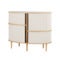 Audacious Highboard är ett mångsidigt skåp som kombinerar nordisk enkelhet med djärva designdetaljer. De karaktäristiska jalusidörrarna i tyg ger möbeln en nostalgisk känsla med en modern twist och gör den till ett blickfång i vardagsrummet eller vilket rum som helst.
