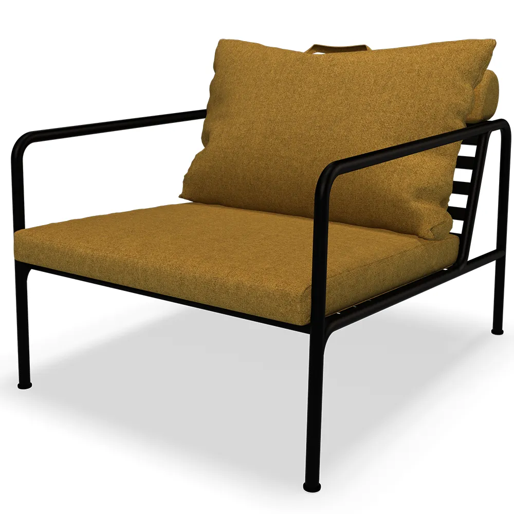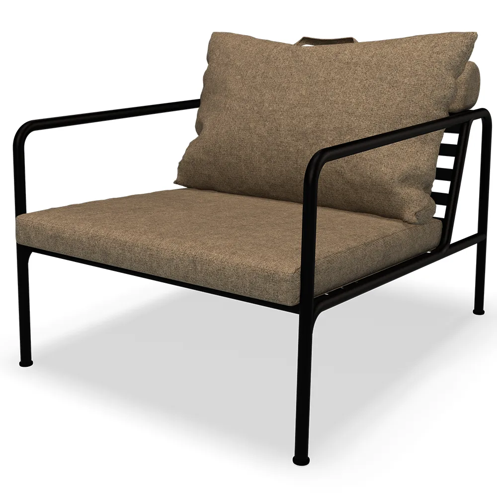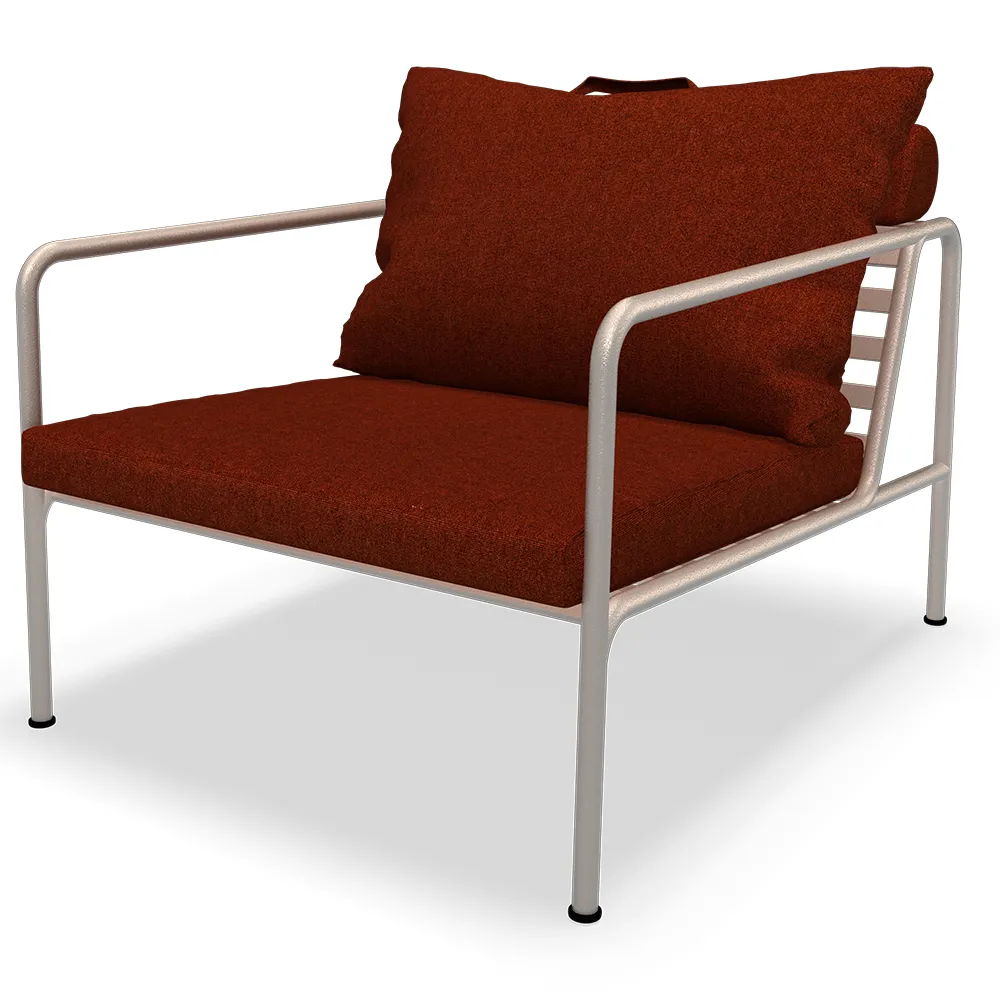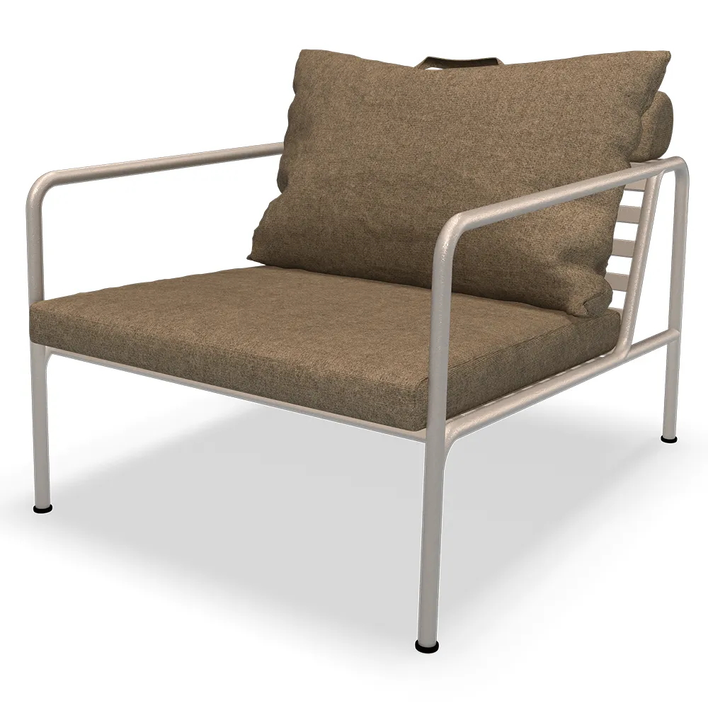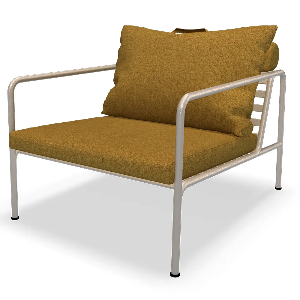 Kuddarna till AVON är gjorda av Sunbrella Heritage-tyg som innehåller 50 % återvunnen akryl. Färgstarka fiberändar från processen att återanvända det primära materialet kan förekomma i väven och variera tygets färg från en sats till en annan. Detta skapar ett unikt tyg med en naturlig look och vintagecharm.