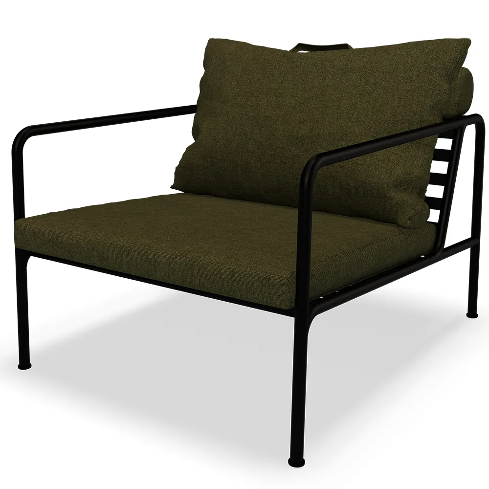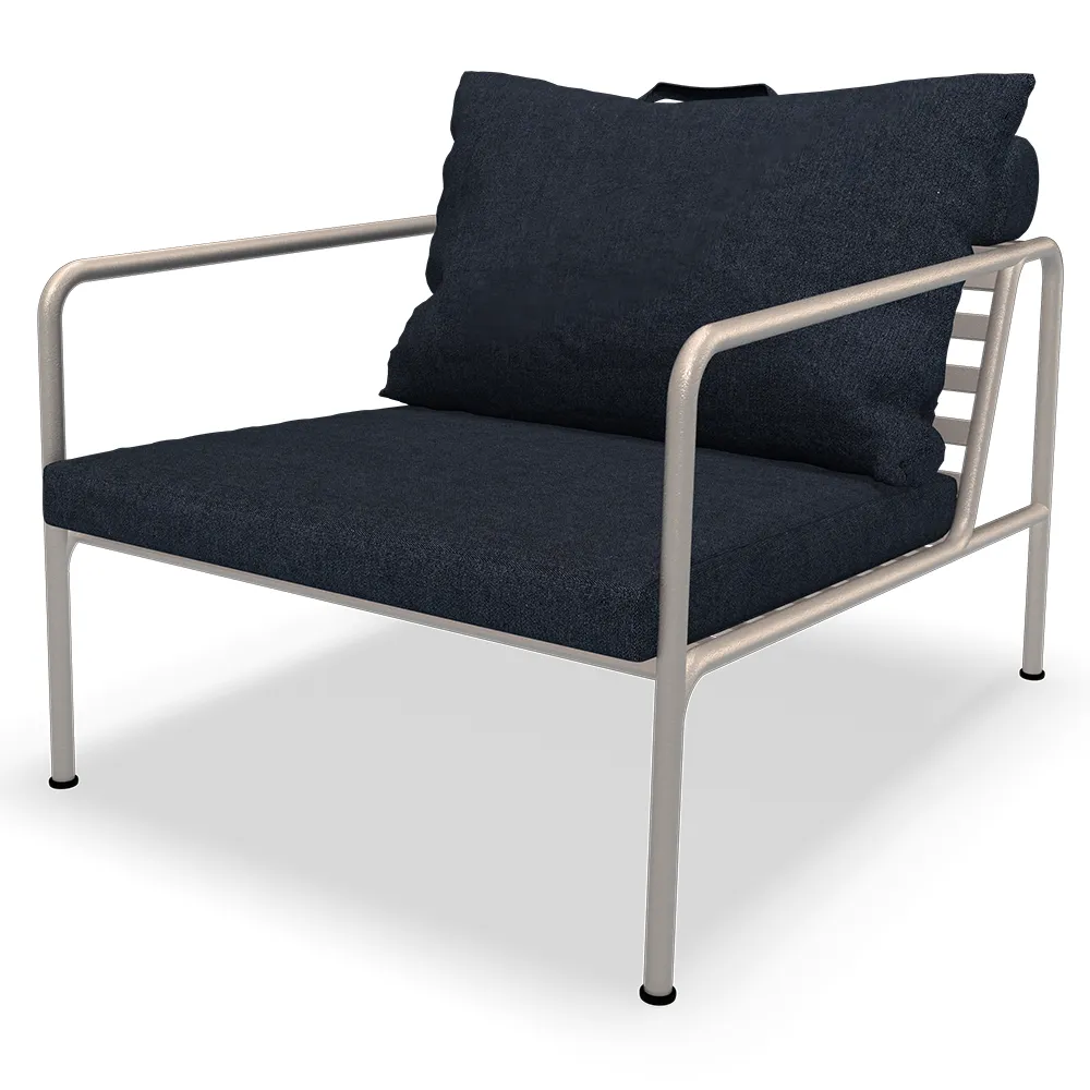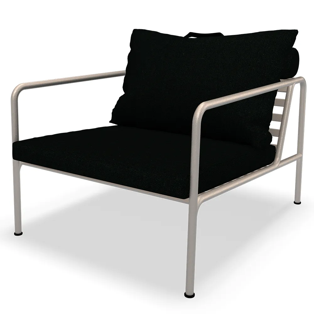 Den underhållsfria ramen, och konstruktionen av de stora mjuka ryggkuddarna, är precis det – enkelheten i strukturen, där låga linjer ser till att designen alltid framstår som stolt, både med och utan dynor – sommar som vinter. Handtagen på kuddarna är ett uttalande om produktens funktion, vilket gör dem lätt att ta tag i och förvara vid behov.