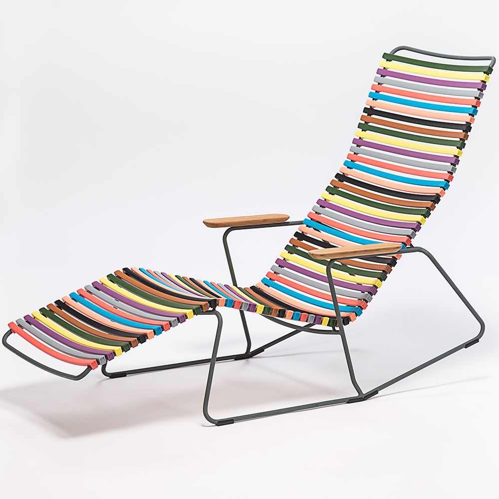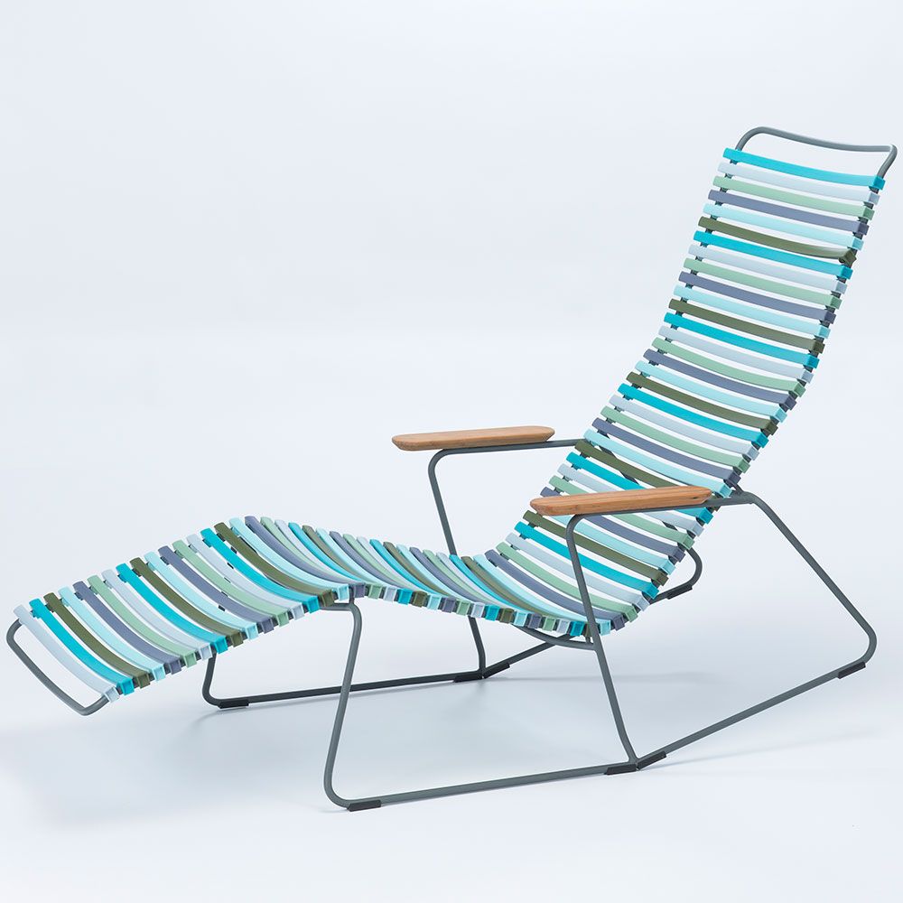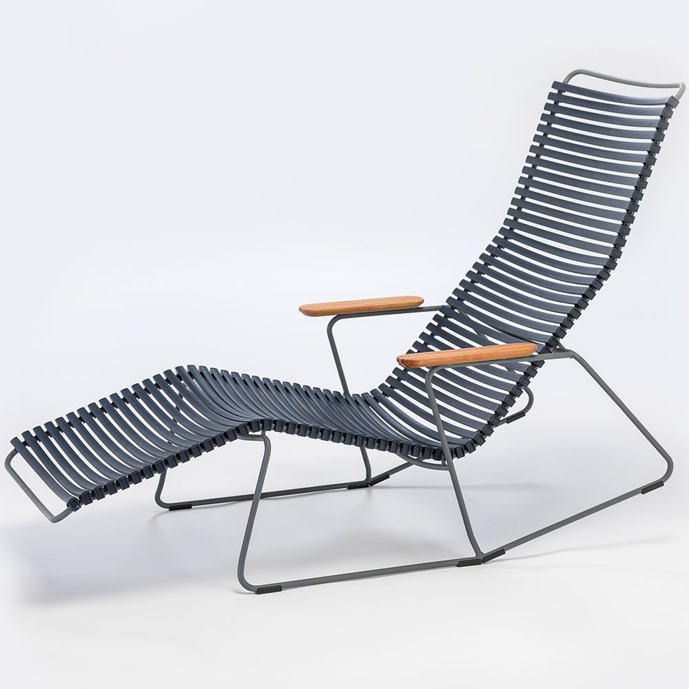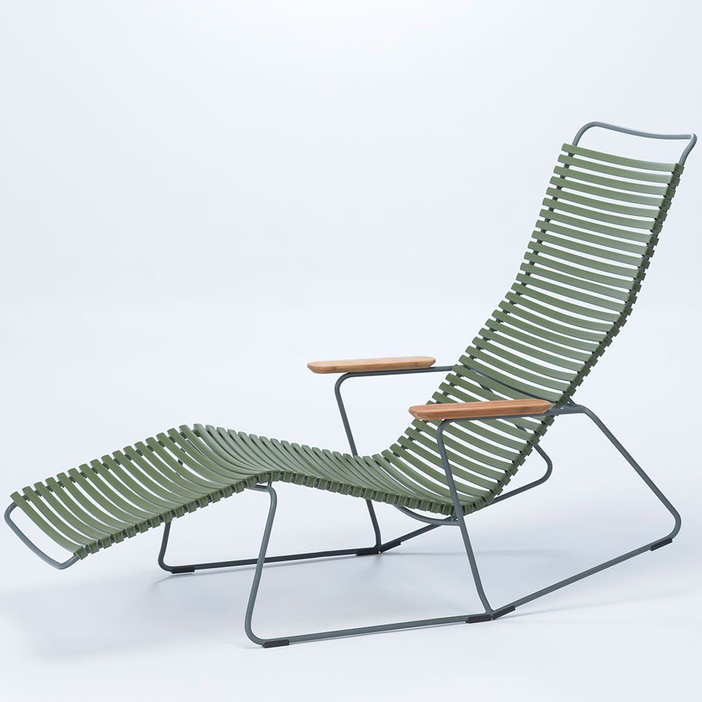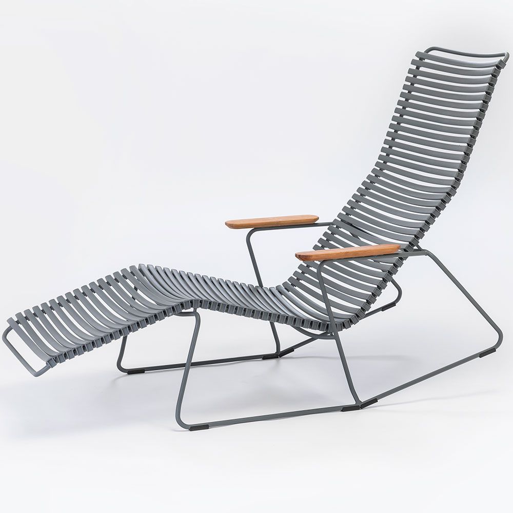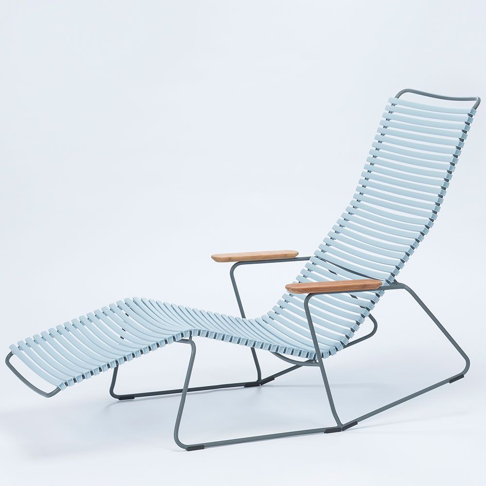 Click är en kollektion bestående av utemöbler från danska HOUE. Unikt för kollektionen Click är att den är tillverkad av ergonomiskt väl genomtänkta plastlameller som ger en härlig komfort med en lagom svikt. Stommen är tillverkad av pulverlackerad aluminium som gör att stolen kan stå ute året runt utan att ta skada.