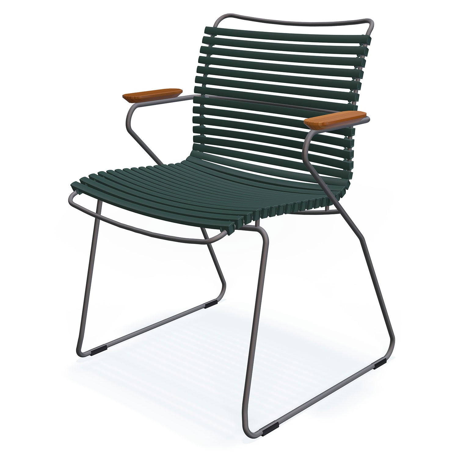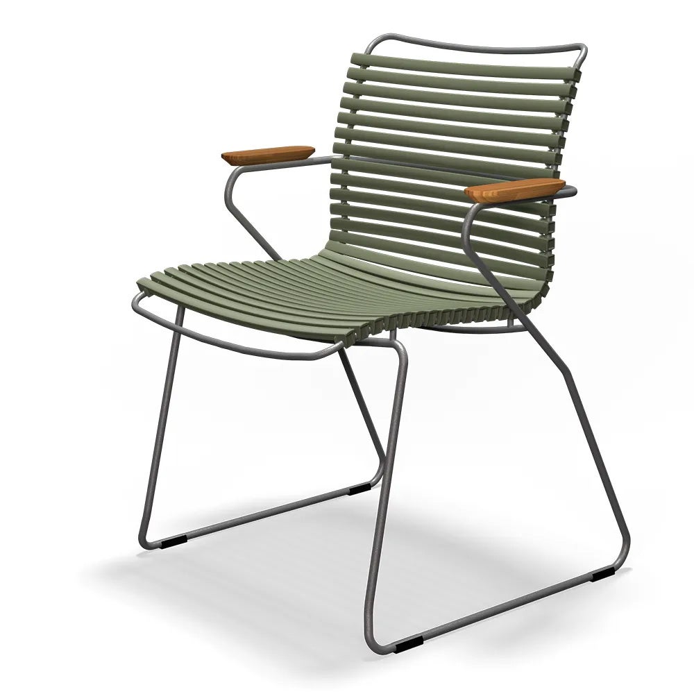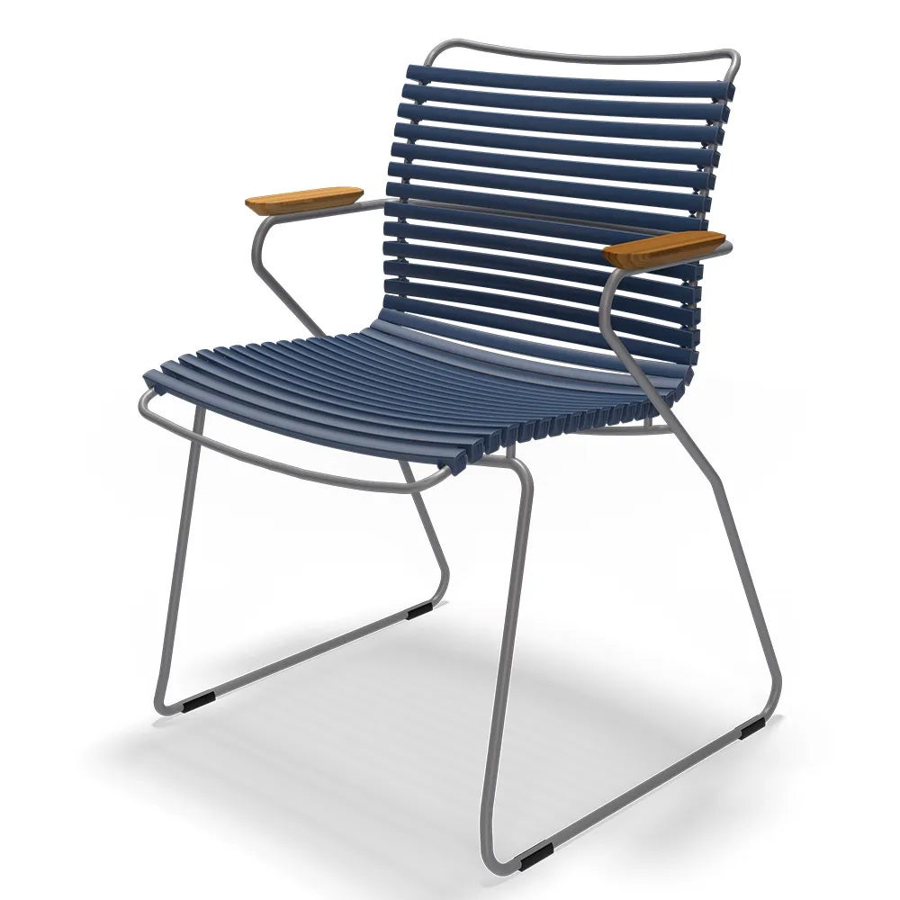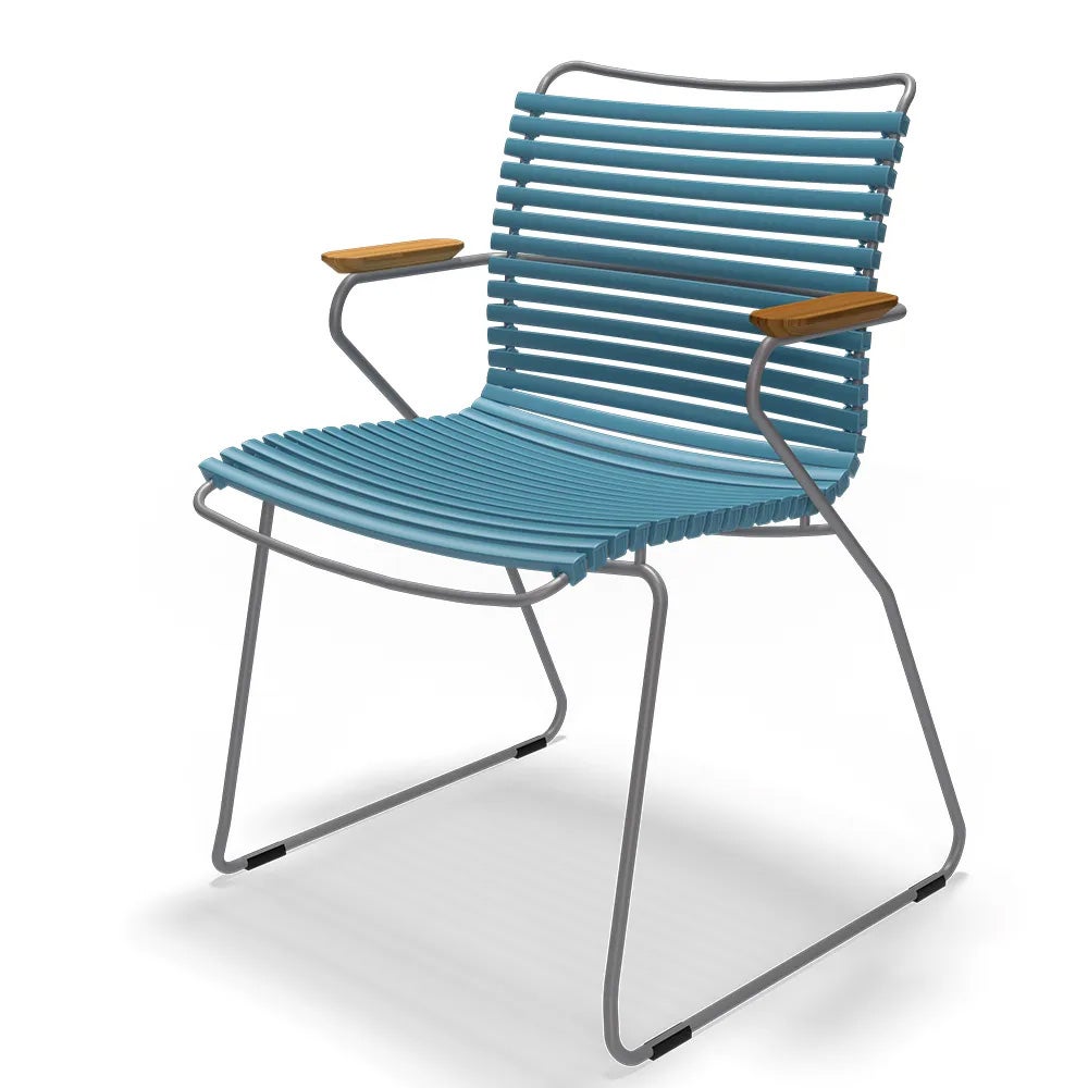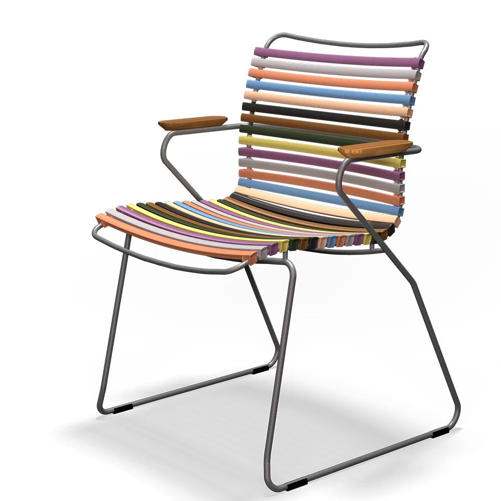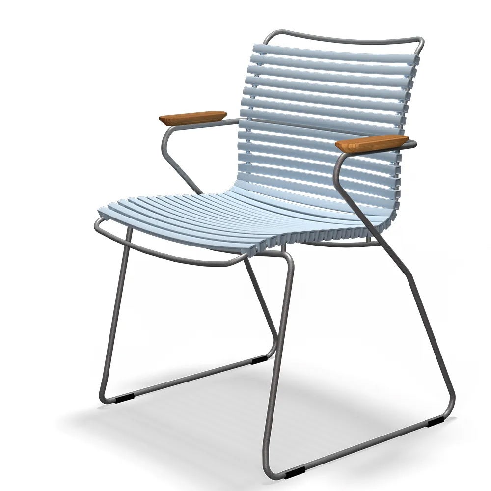 Click är en kollektion bestående av utemöbler från danska HOUE. Unikt för kollektionen Click är att den är tillverkad av ergonomiskt väl genomtänkta plastlameller som ger en härlig komfort med en lagom svikt. Stommen är tillverkad av pulverlackerad aluminium som gör att stolen kan stå ute året runt utan att ta skada.