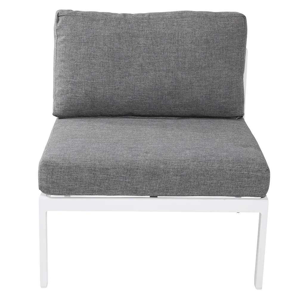 Tillverkad i slitstark aluminium och kompletterad med mjuka dynor i polyester, erbjuder denna mittdel inte bara en elegant design utan också överlägsen komfort för avkopplande stunder utomhus.
