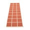 Criss-mattan är en modern tolkning av den klassiska kvadraten, där grafisk skärpa möter tidlös elegans. De inramade kvadraterna skapar ett harmoniskt djup som varierar beroende på färgvalet – vissa varianter har en kontrasterande kant för en lekfull detalj, medan andra har en ton-i-ton-finish för ett mer sammanhängande utseende. Varje matta är resultatet av ett avancerat vävningshantverk där två tekniker kombineras med stor precision. Detta samspel resulterar i ett textil som inte bara känns solid och hållbar, utan också ger ett stilfullt designuttryck i hemmet. Criss är därför lika mycket en praktisk inredningsdetalj som en självklar markör för modern stil. Material: Polyvinylklorid (PVC) och polyestervarp