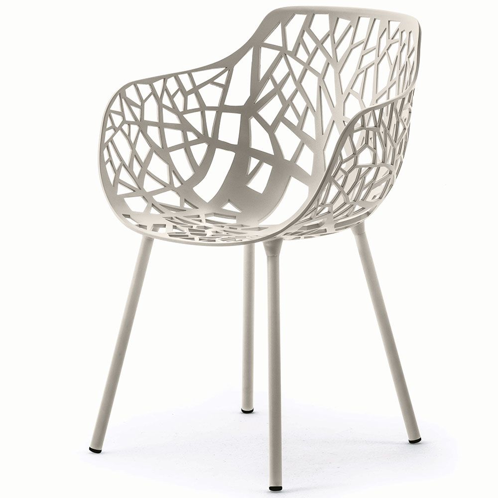 Elegant formspråk och sobra, stilrena färger karaktäriserar Fast möbelkollektioner. Deras lekfulla formspråk ger ett färgsprakande inslag till hemmet, oavsett om möbeln väljs för inomhus- eller utomhusbruk. Den kanske mest kända möbeln i Fast Designs sortiment är ingen mindre än aluminiumstolen Forest. Forest är i sig ett stycke konst där de italienska formgivarna Robby & Francesca Cantarutti låtit sig inspireras av skogens organiska former. Italiensk konst & design möter funktion & komfort.