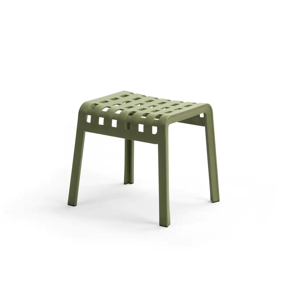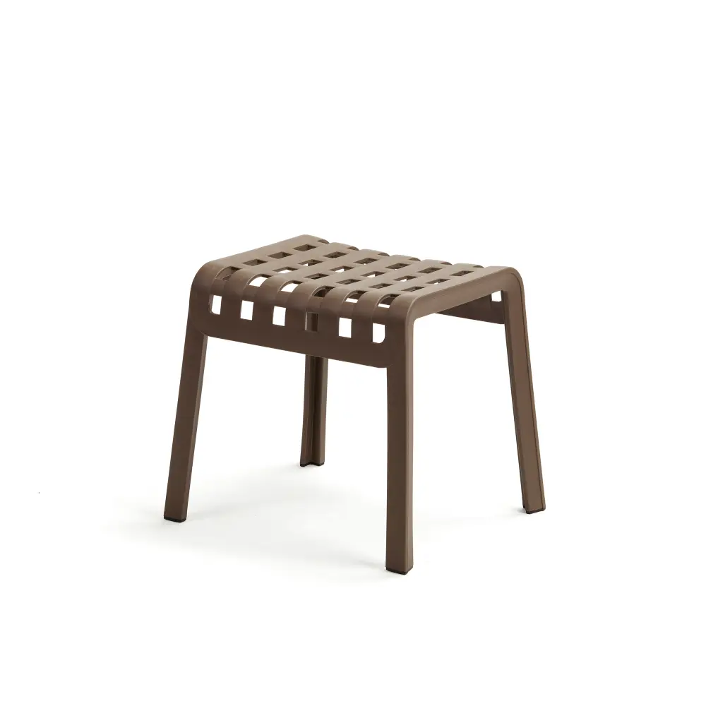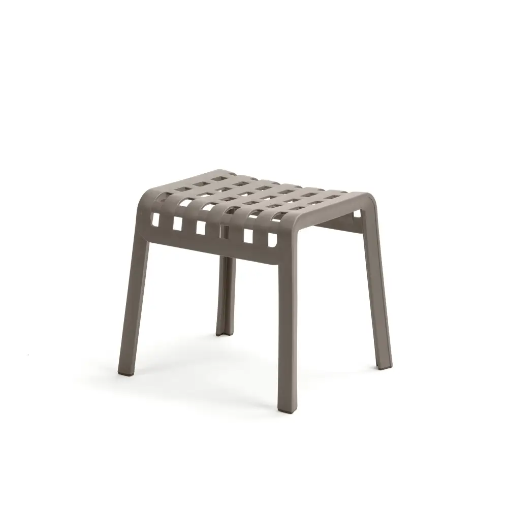 Poggio är en fotpall för utomhusbruk tillverkad i slitstark glasfiberförstärkt plast. Den perforerade designen med ett dekorativt rutmönster ger ett modernt och uttrycksfullt intryck som lyfter din uteplats med en unik karaktär.