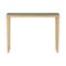 För att framhäva ekens naturliga värme finns bordet i tre stilrena färger: Cloud Grey, Moss Green och Obsidian Black. Den diskreta designen rymmer även en tygfodrad låda, idealisk för att förvara småsaker, bestick eller viktiga papper nära till hands.