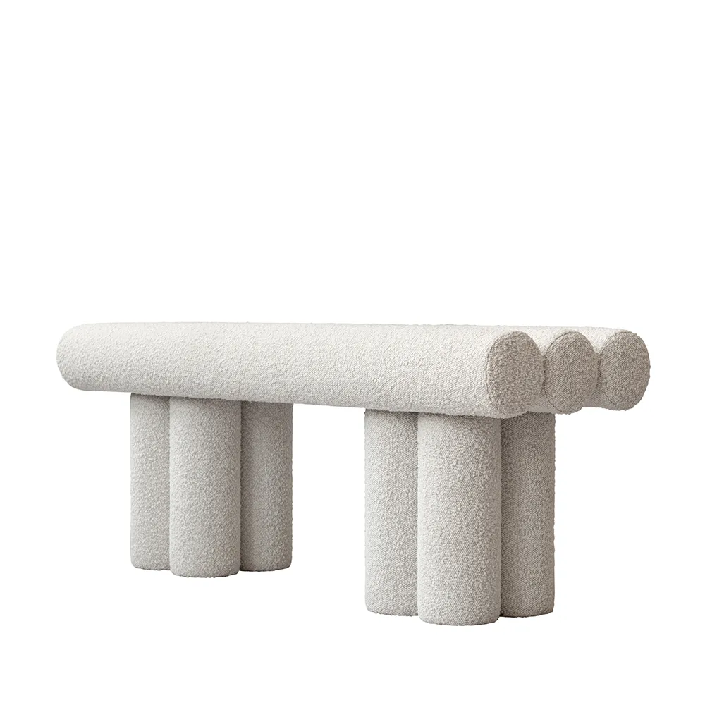 Bänken finns även i bouclétyg, vilket ger ett mer texturerat och samtida uttryck med en mjuk, taktil yta som tillför ytterligare djup och värme till designen.
