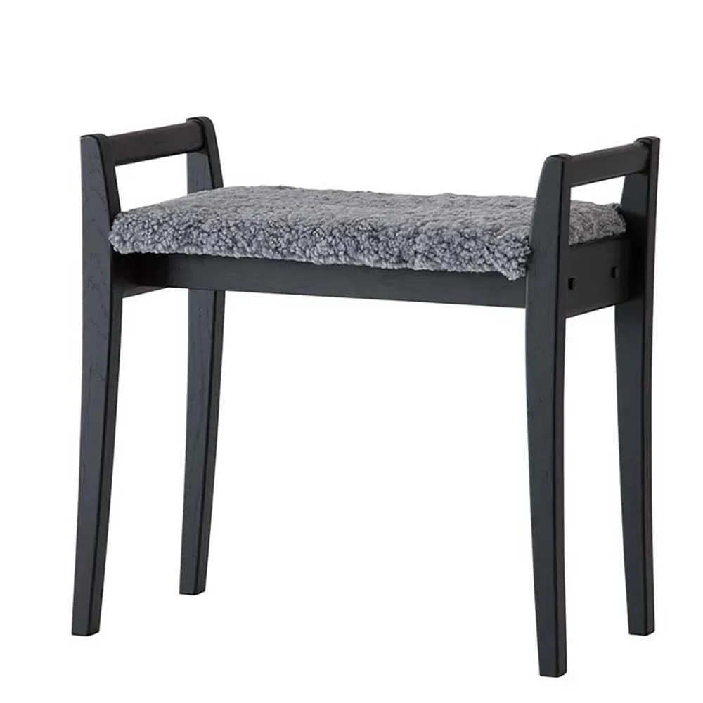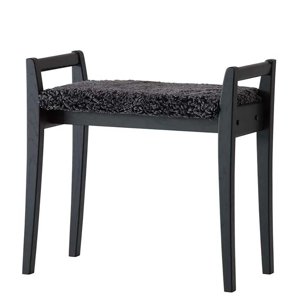 Nadja Bänk 130 cm Svartbetsad Ask/Fårskinn Mörkgrå