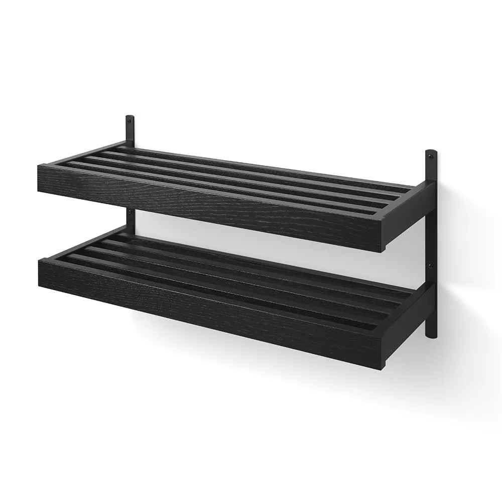 Nadja Skohylla 80 cm 2 plan väggmonterad Lackad Ek/Mattsvart stål