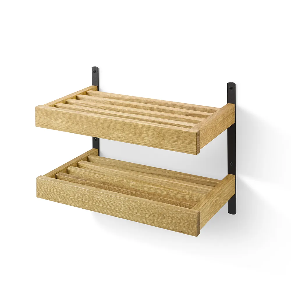 Nadja Skohylla 80 cm 2 plan väggmonterad Oljad Ek/Slipat stål