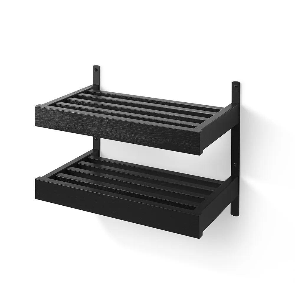 Nadja Skohylla 50 cm 2 plan väggmonterad Lackad Ek/Mattsvart stål