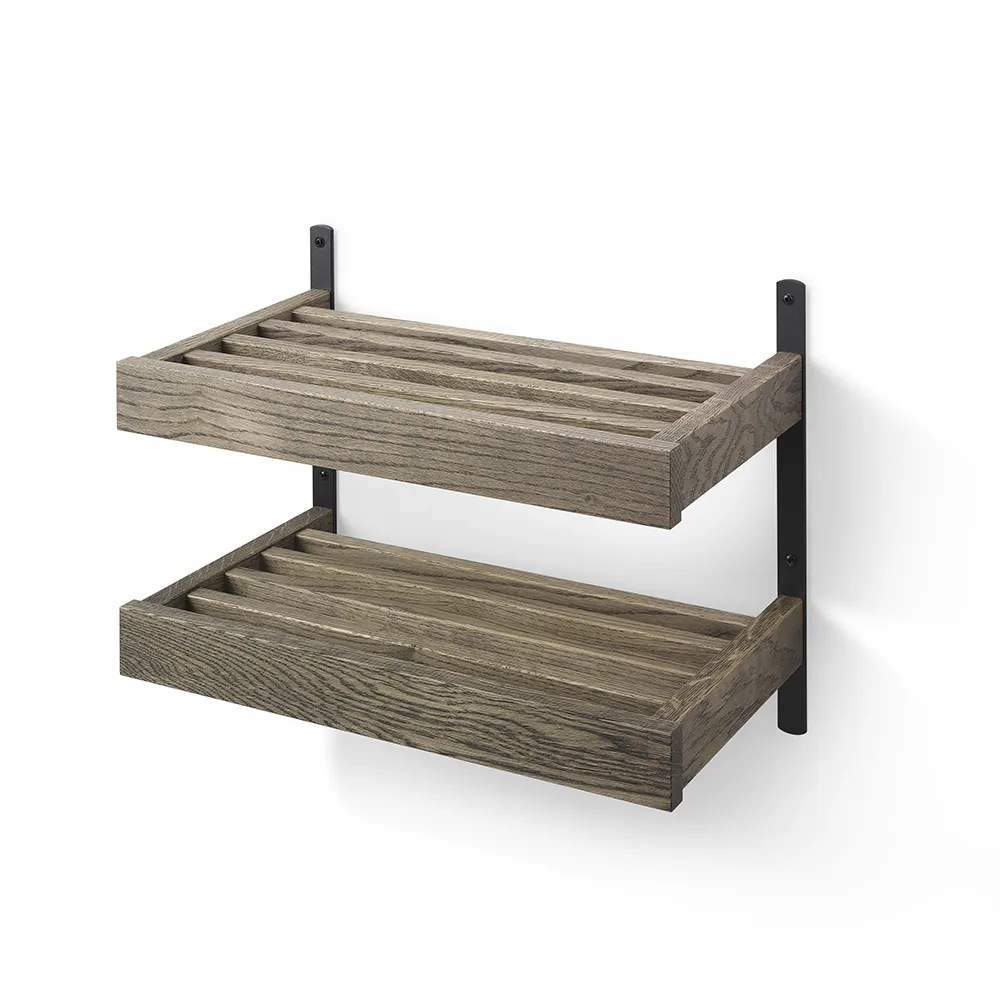 Nadja Skohylla 50 cm 2 plan väggmonterad Rökt Ek/Mattsvart stål