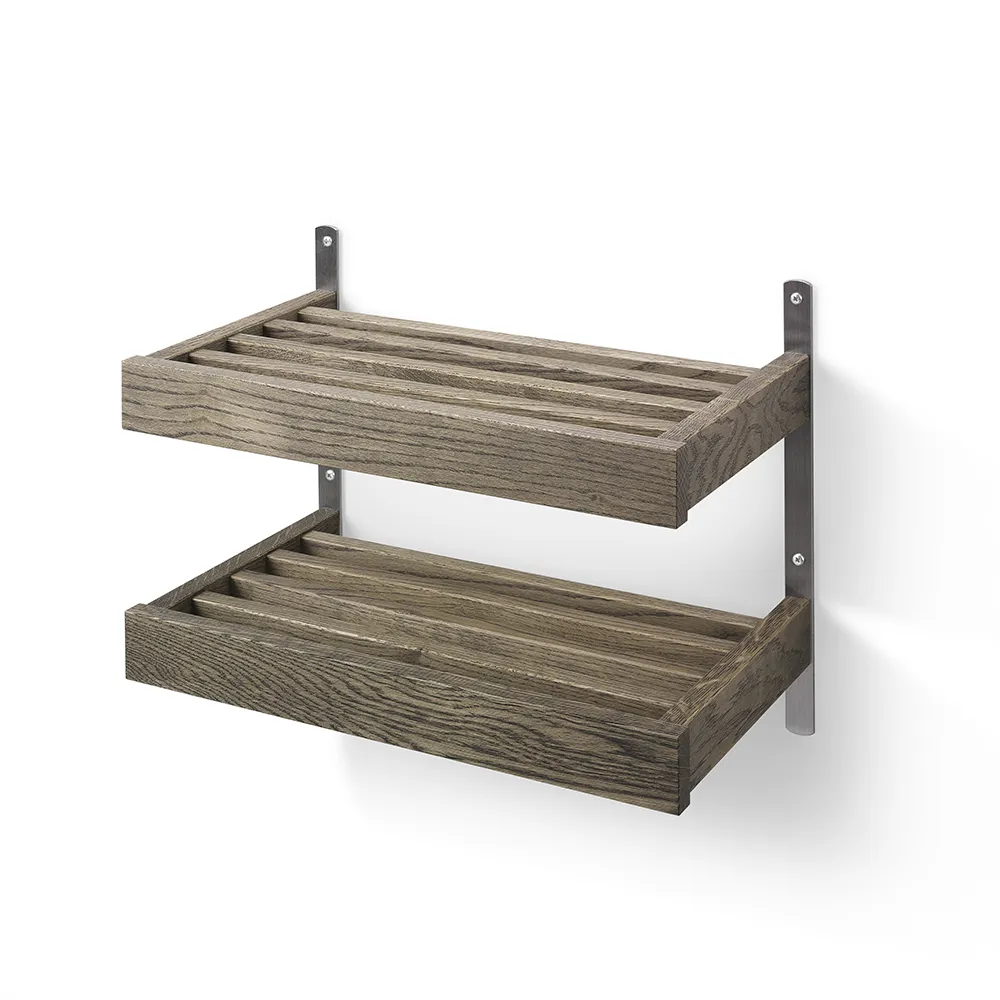 Nadja Skohylla 80 cm 2 plan väggmonterad Rökt Ek/Slipat stål