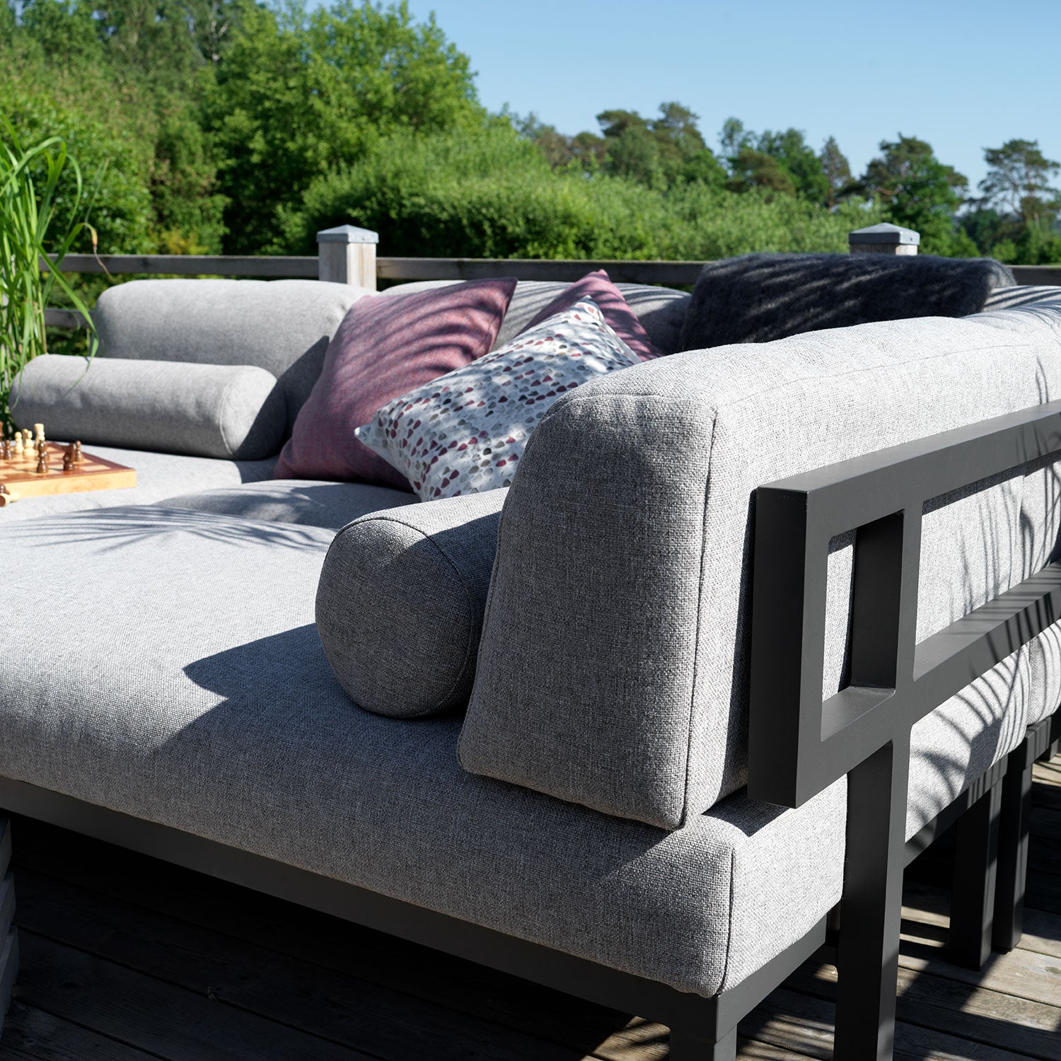 Gonesse är en innovativ loungegrupp från Brafab. Denna soffgrupp är inte bara snygg och modern utan även genomtänkt med en innovativ flexibilitet. Välj mellan att använda loungegruppen som en läcker hörnsoffa eller ställ ihop delarna och skapa en lyxig solsäng för två. Med bekväma och generösa dynor i kvalitativt olefintyg skapas en underbar sittkomfort och bekvämlighet. Här är man garanterad att trivas och komma till ro för att kunna koppla bort vardagsstressen. Njuten av soliga dagar tillsammans med familj eller vänner, eller själv tillsammans med en fängslande bok. Oavsett tillfälle eller sällskap är Gonesse ett utmärkt alternativt till den moderna och stilrena uteplatsen eller altanen.