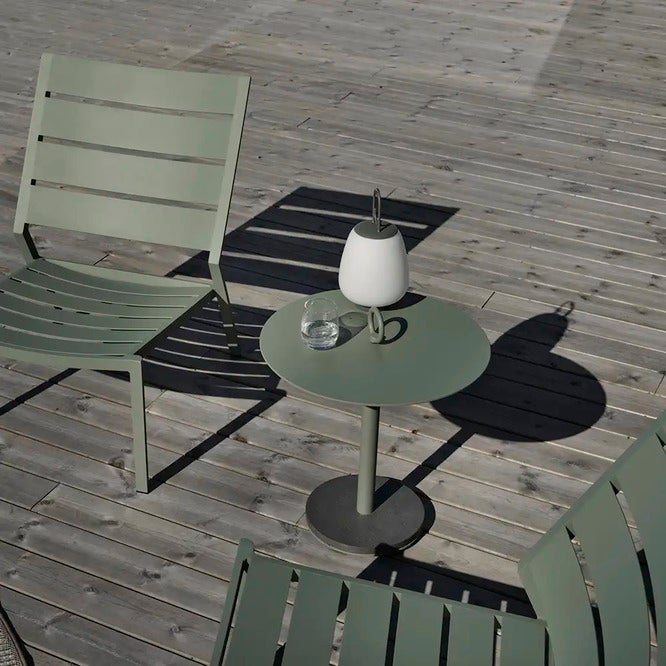 Sidobord i modern design och tåliga material för uteplats och uterum.