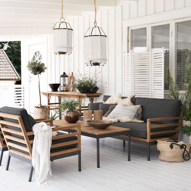 Tack vare sina vackra teakdetaljer drar serien mot en mer naturnära och naturtrogen stil och kombineras fint ihop med andra naturmaterial och mer jordnära färger när det kommer till styling och dekoration. Välj själv bland snygga prydnadskuddar, plädar och dekorationer. Seriens aluminiumstomme bidrar till ett mer modernt och stilrent intryck som ger serien en snygg och fräsch inramning.