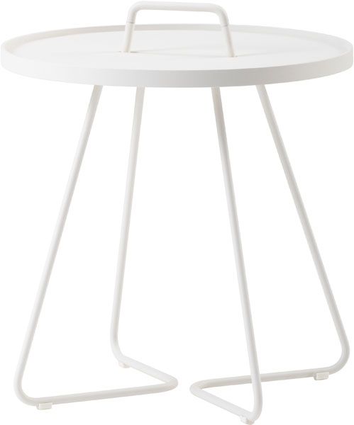 En serie soff- och sidobord med praktiskt handtag och avtagbar bricka i aluminium. Passar lika bra inomhus som utomhus.