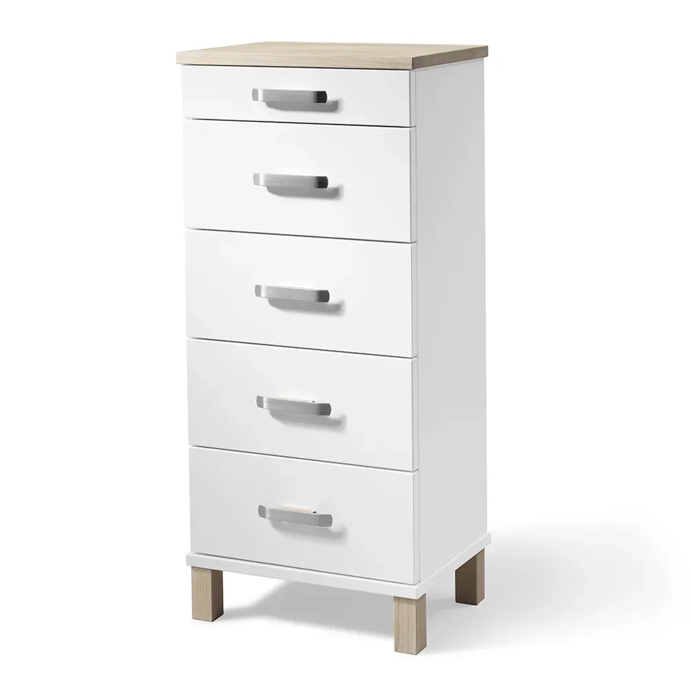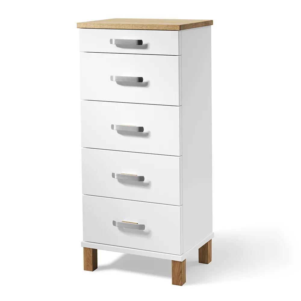 Uppdatera ditt hem med elegans och funktionalitet med Byrå Nadja från Oscarssons Möbel. Denna stilfulla byrå med fem lådor och träben kombinerar skönhet och praktisk förvaring på bästa sätt. Med ett djup på 31 cm passar den perfekt i både hall och sovrum. Byrå Nadja har en tidlös design som förhöjer varje rum.
