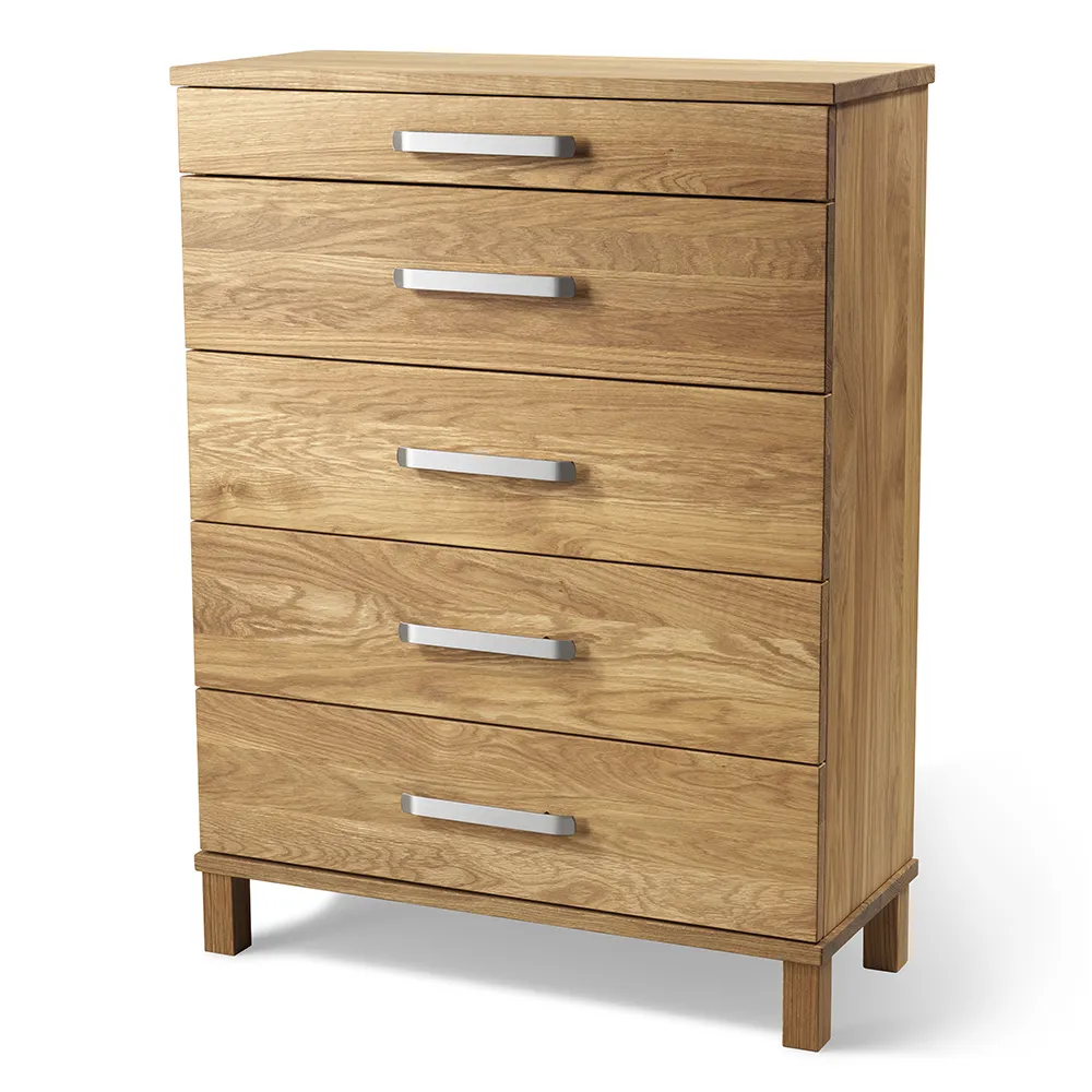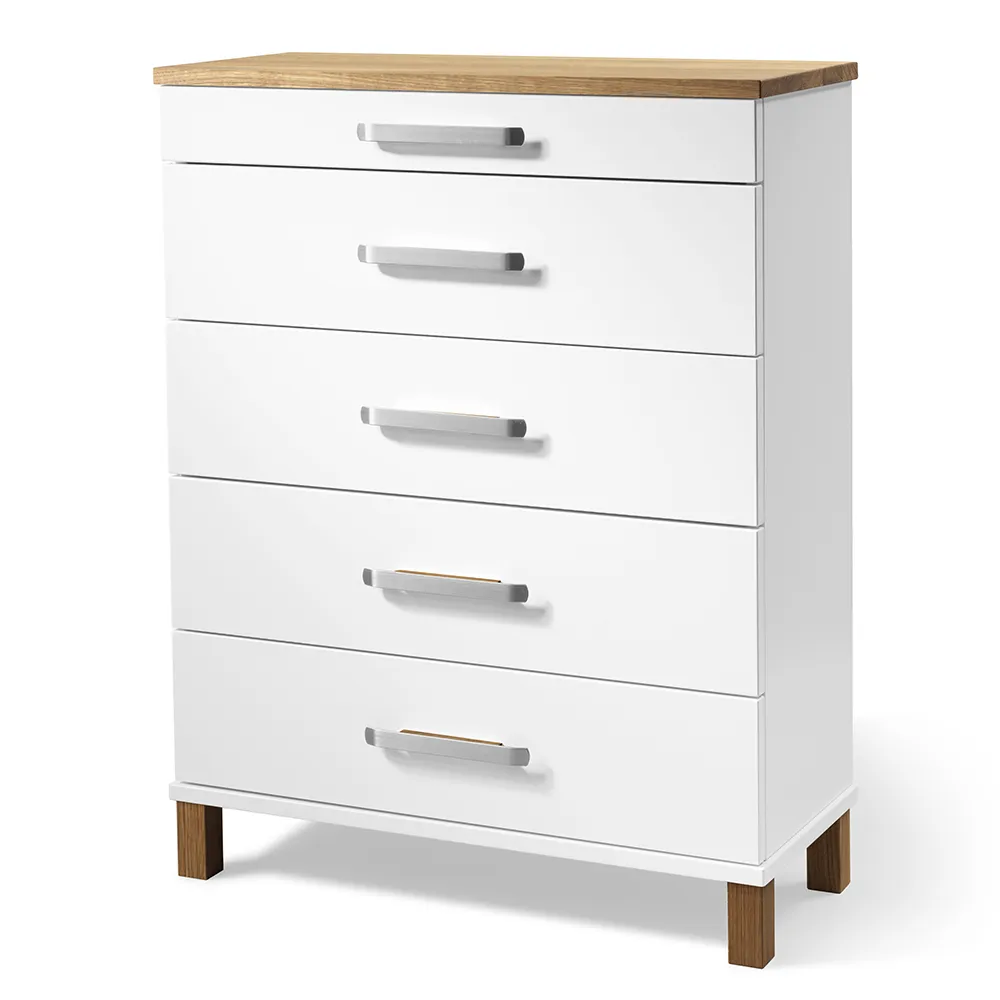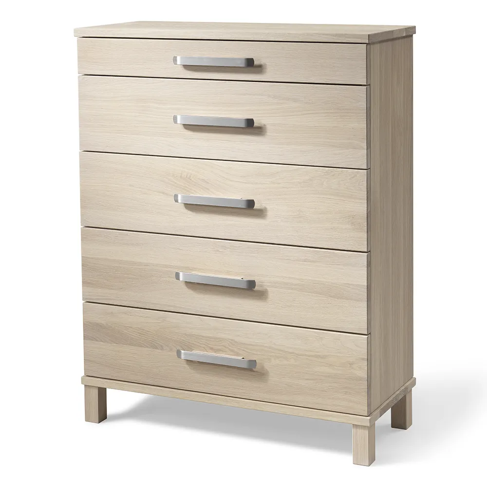 Byrå Nadja från Oscarssons Möbel är en bred byrå med fem lådor som passar smidigt in i både hall och sovrum. Tillverkad i massiv ek eller vitlackad MDF, erbjude... Mer info