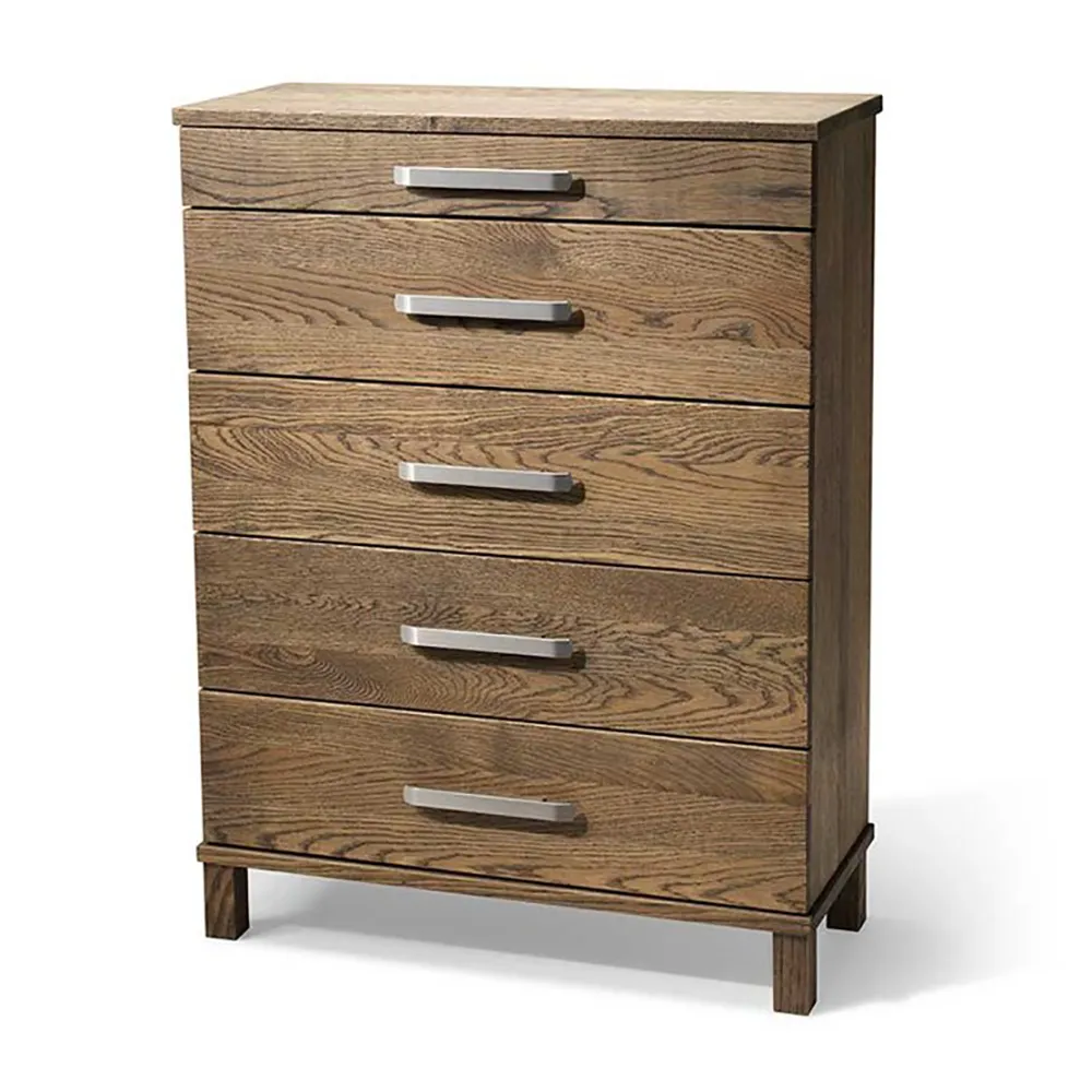 Byrå Nadja från Oscarssons Möbel är en bred byrå med fem lådor som passar smidigt in i både hall och sovrum. Tillverkad i massiv ek eller vitlackad MDF, erbjuder denna byrå både hållbarhet och stil. Handtagen är tillverkade i slipat stål, vilket ger en elegant touch till dess design. Byrå Nadja kombinerar funktionalitet och estetik på bästa sätt.