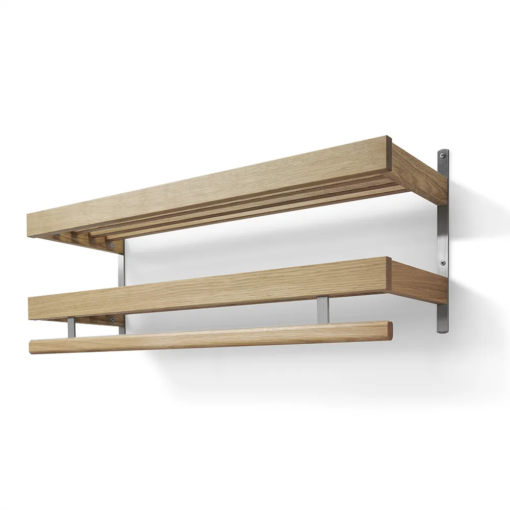 Oscarssons Möbel Hatthylla Nadja med två hyllplan är en svensktillverkad möbel från småländska Oscarssons Möbel. Denna eleganta hatthylla finns i flera olika storlekar och träslag, tillverkad i massiv ek eller vitlackad massiv björk. Med ett hyllplan och detaljer i slipat stål kombinerar Hatthylla Nadja funktionalitet och stil på bästa sätt.