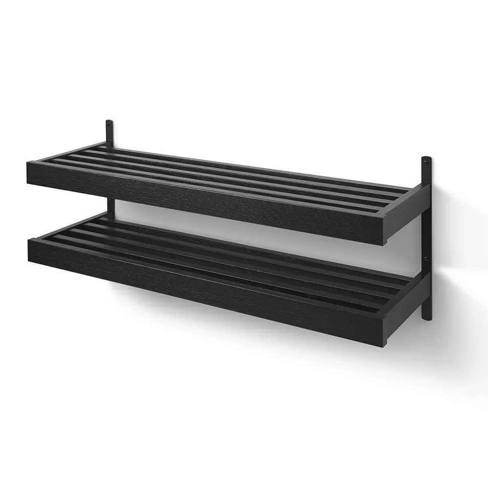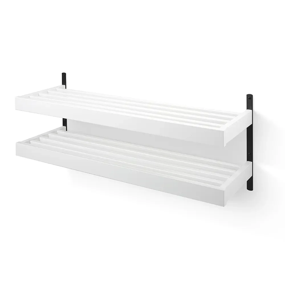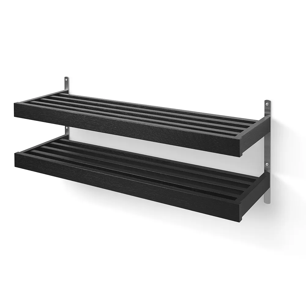 Nadja Skohylla 100 cm 2 plan väggmonterad Vitlackad Björk/Slipat stål