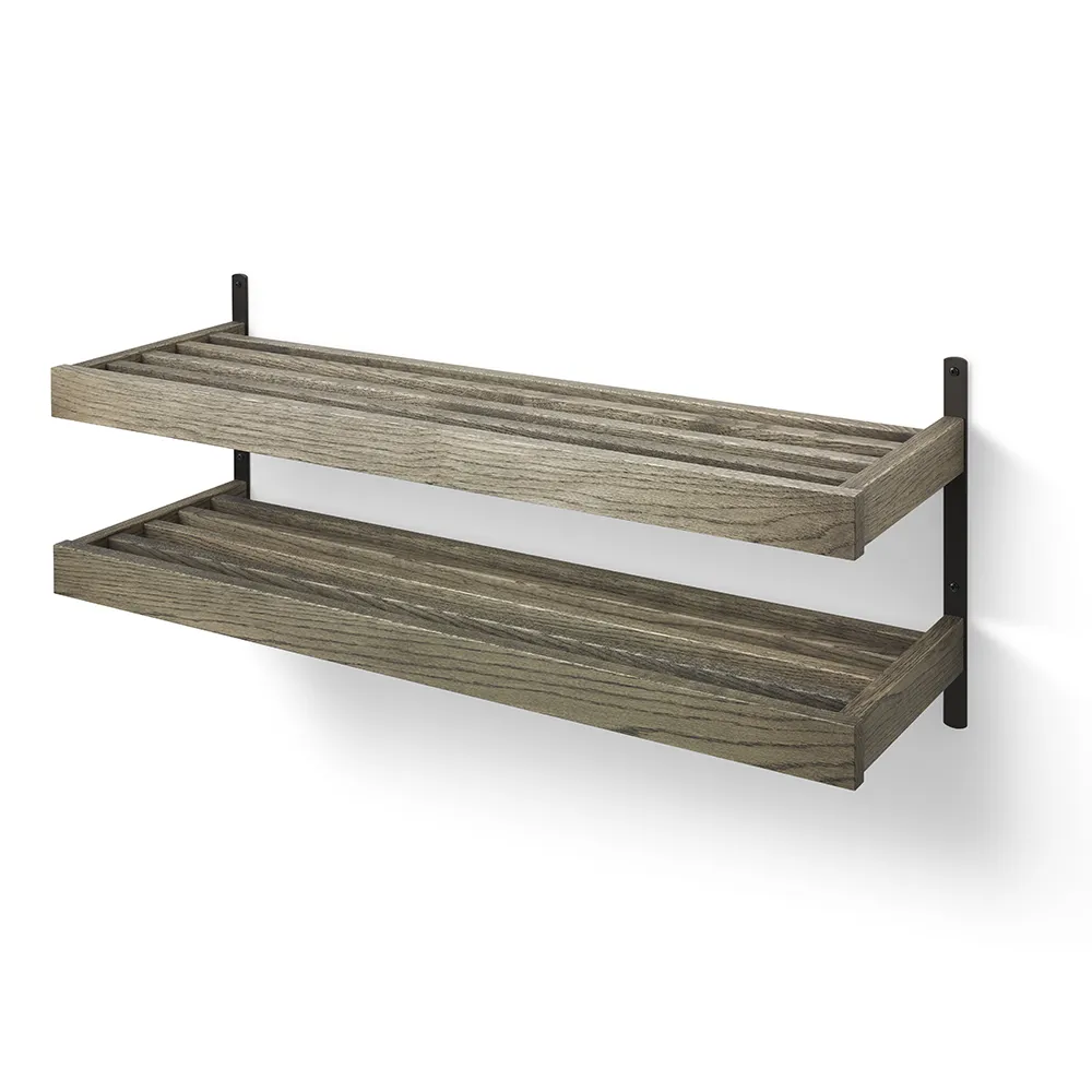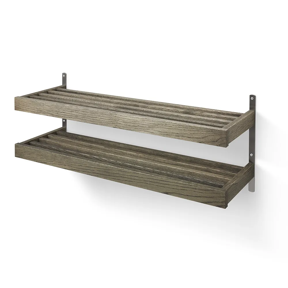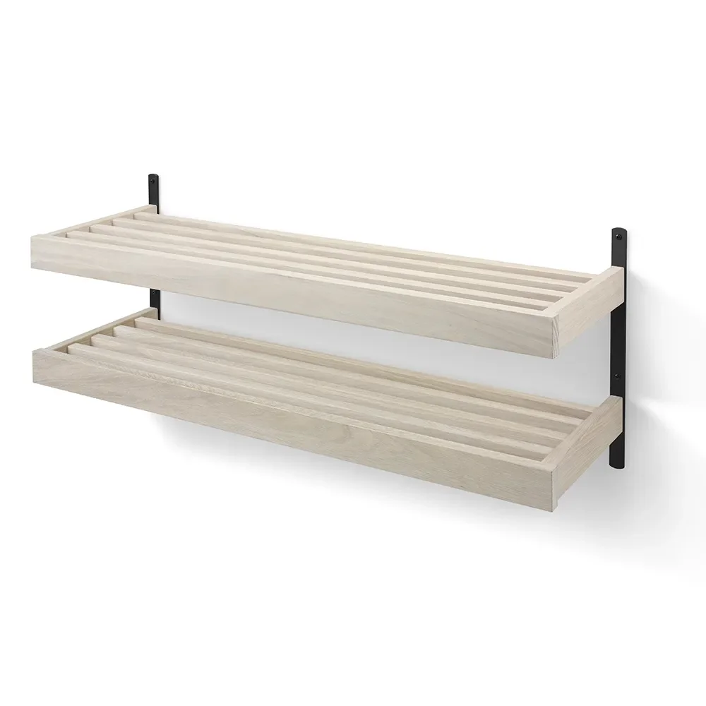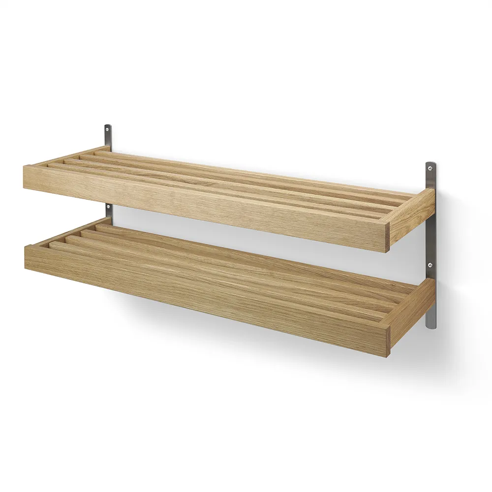 Nadja Skohylla 100 cm 2 plan väggmonterad Vitlackad Björk/Slipat stål