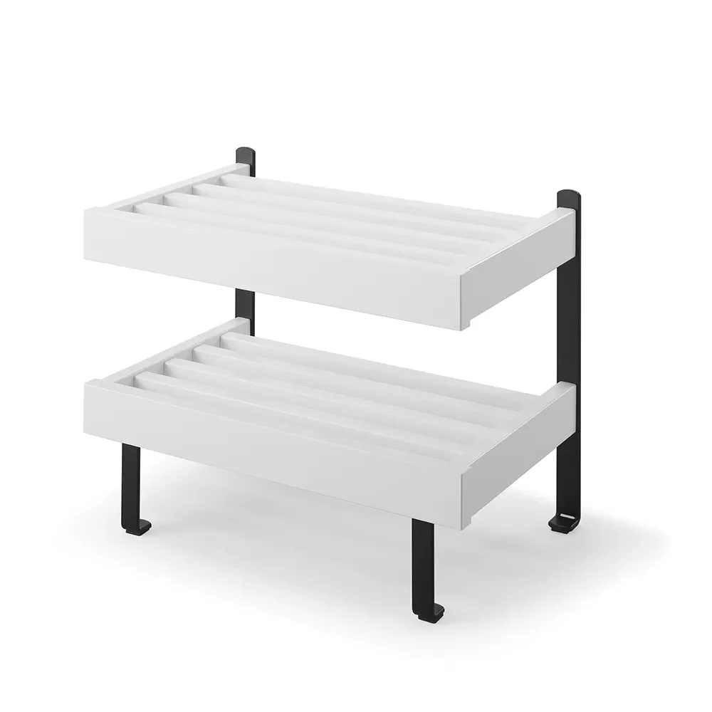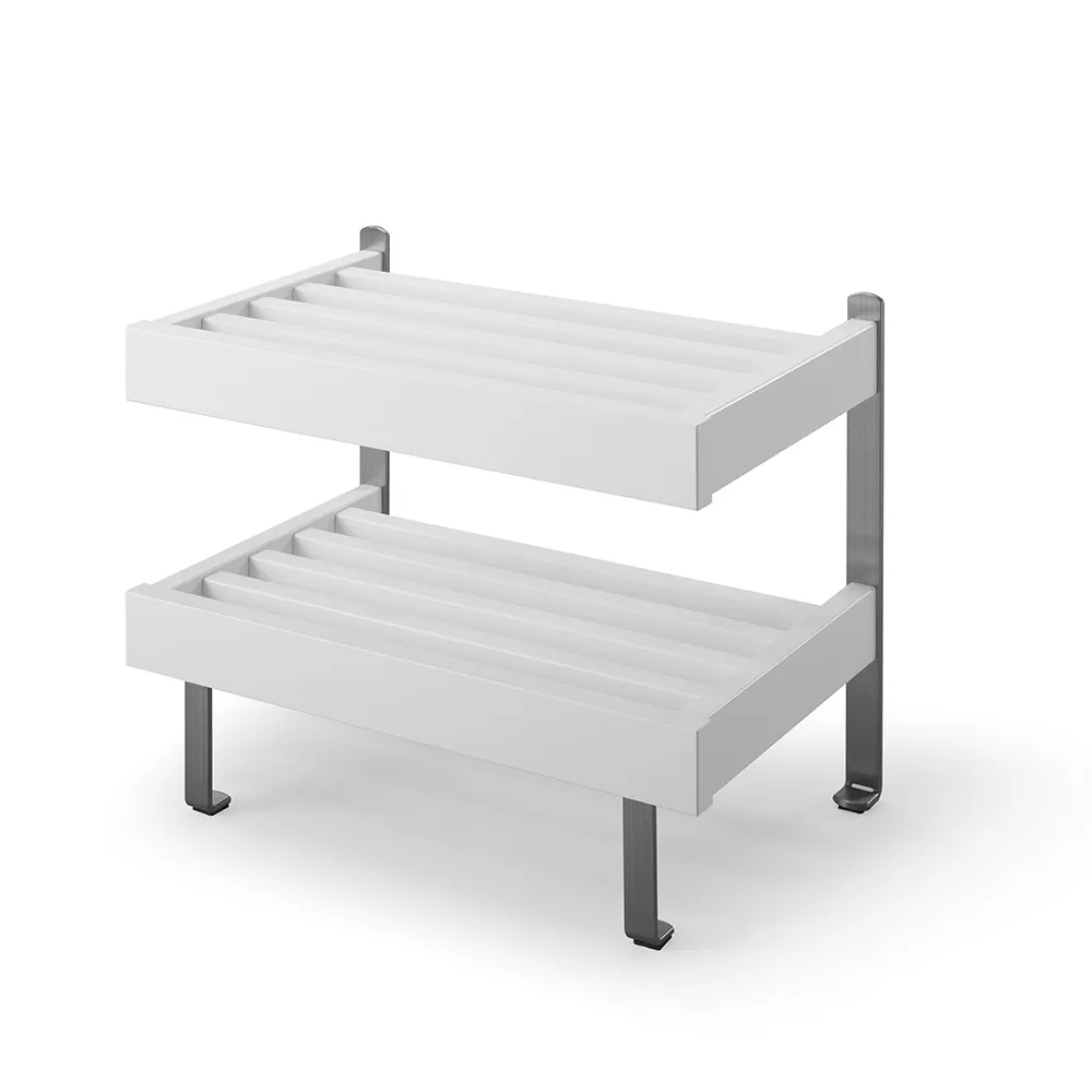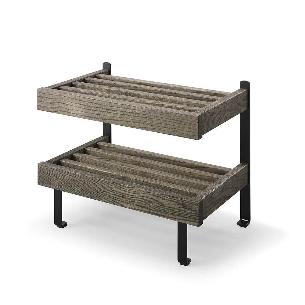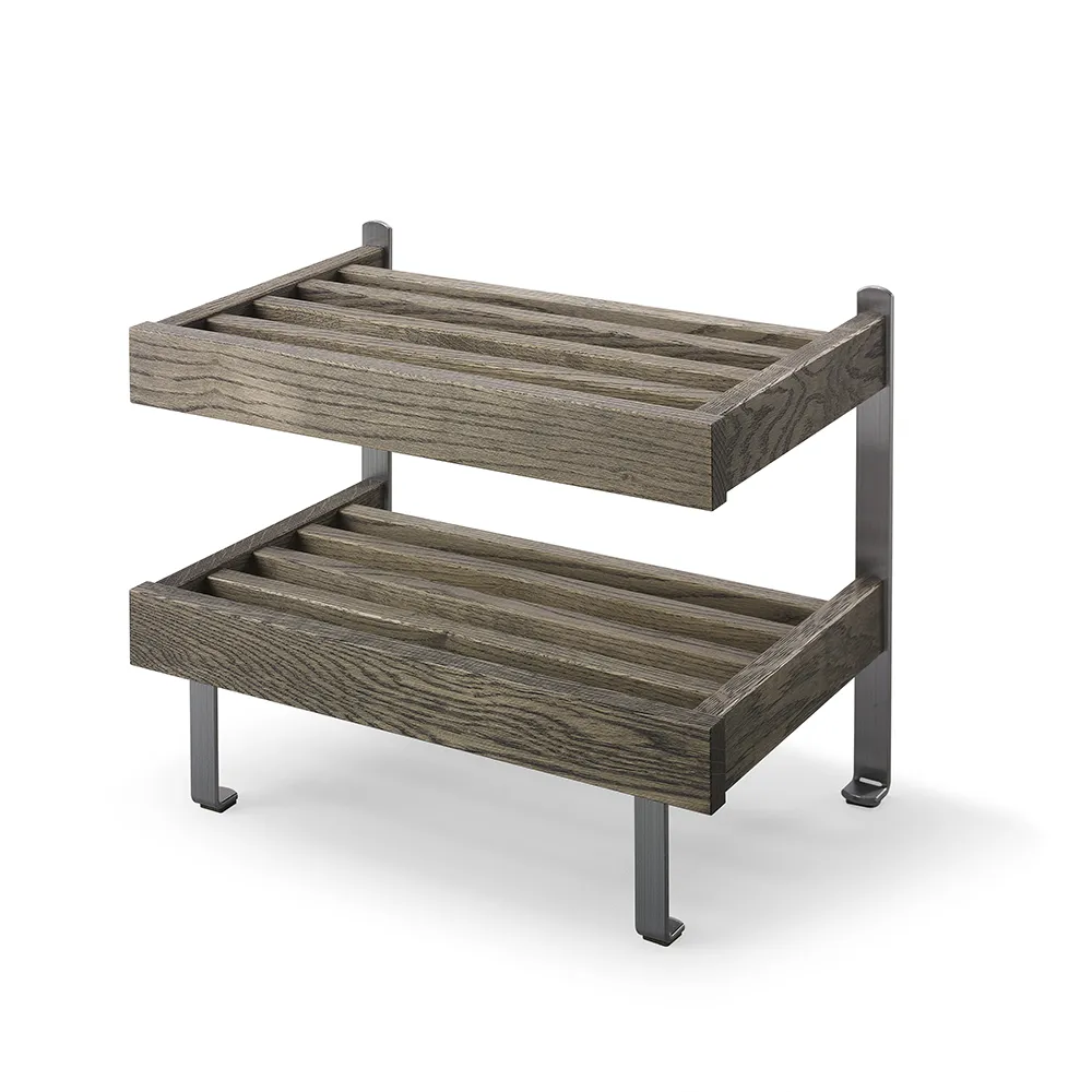 Nadja Skohylla är en elegant golvmodell med två hyllplan och detaljer i slipat stål. Tillverkad i massiv ek eller vitlackad massiv björk, erbjuder denna skohylla både hållbarhet och stil. Nadja Skohylla är en tidlös möbel från Oscarssons Möbel, perfekt för att organisera dina skor på ett snyggt och praktiskt sätt.