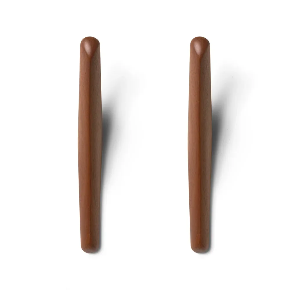 PI-kollektionen hyllar naturens design genom att behålla träets styrka och former precis som naturen har skapat dem. Varje PI-väggkrok är handgjord och noggrant bearbetad för att respektera träets unika karaktär. Krokarna har en intressant form som kommer fram i sin eleganta och stilrena yta. Designad av Alain van Havre och tillverkad för hand i massivt trä med en vacker lackerad finish. Säljs i ett set om två.
