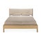 PI-sängen kombinerar massivt trä med en mjuk, klädd sänggavel som skapar en elegant kontrast. Den stoppade gaveln ger extra komfort och framhäver samtidigt träets naturliga värme och struktur. Resultatet blir en säng som förenar naturens skönhet med modern design och hög funktionalitet.