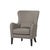 Den neutrala, vävda textilen i varm gråton gör fåtöljen lätt att kombinera med olika inredningsstilar – från modern minimalism till traditionell elegans. Ben i mörkbetsat trä ger en stabil bas och förstärker det klassiska uttrycket.