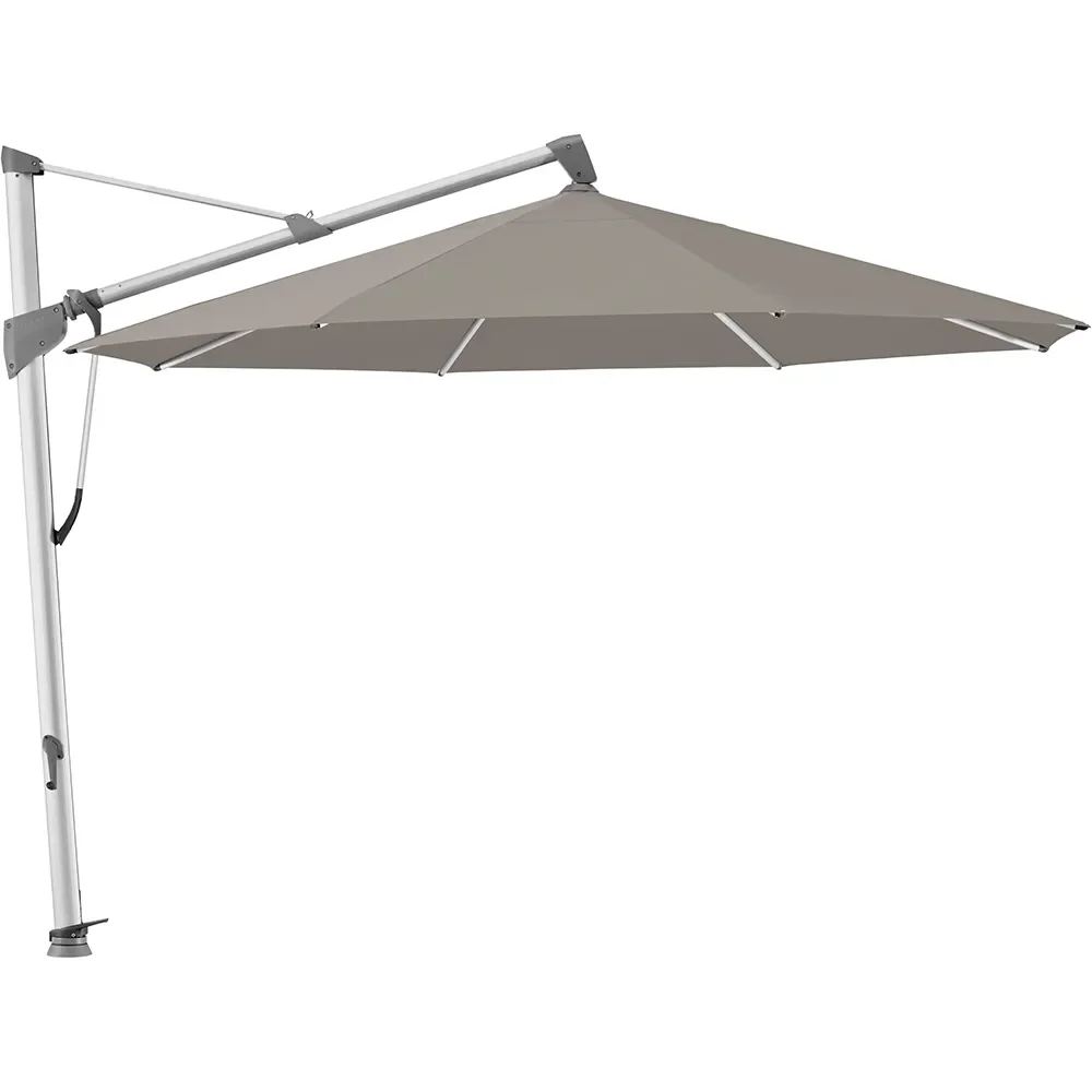 Detta funktionella frihängande parasoll från Glatz är en stor parasoll med en elegant ram. SOMBRANO® S + kan lätt öppnas och stängas samtidigt med hjälp av en självlåsnings vevmekanism på båda sidor. Tack vare självlåsnings mekanismen kan SOMBRANO® S + samtidigt utvidgas, öppnas och stängas, medans parasollet kan lutas 54 ° på båda sidor i 18 ° steg med hjälp av tippstången och vridas 360 ° tack vare den vridbara foten. På grund av sin storlek, är SOMBRANO® S + idealisk för större områden utomhus.