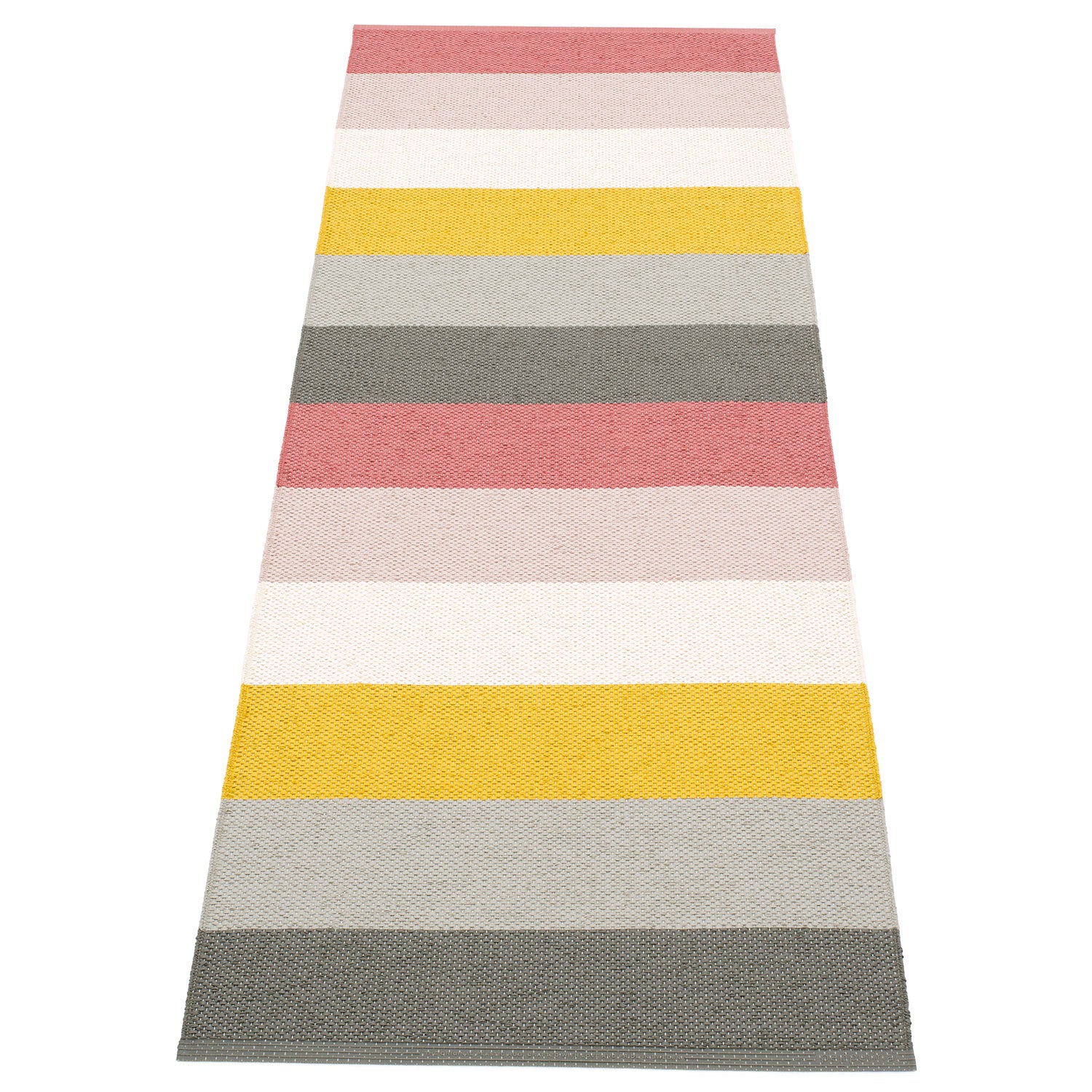 Många utomhusmattor är gjorda i väderbeständiga och lättskötta material som plast, vilket gör dem enkla att torka av och hålla rena. Skaka av smuts regelbundet och förvara mattan torrt när den inte används för längre livslängd.