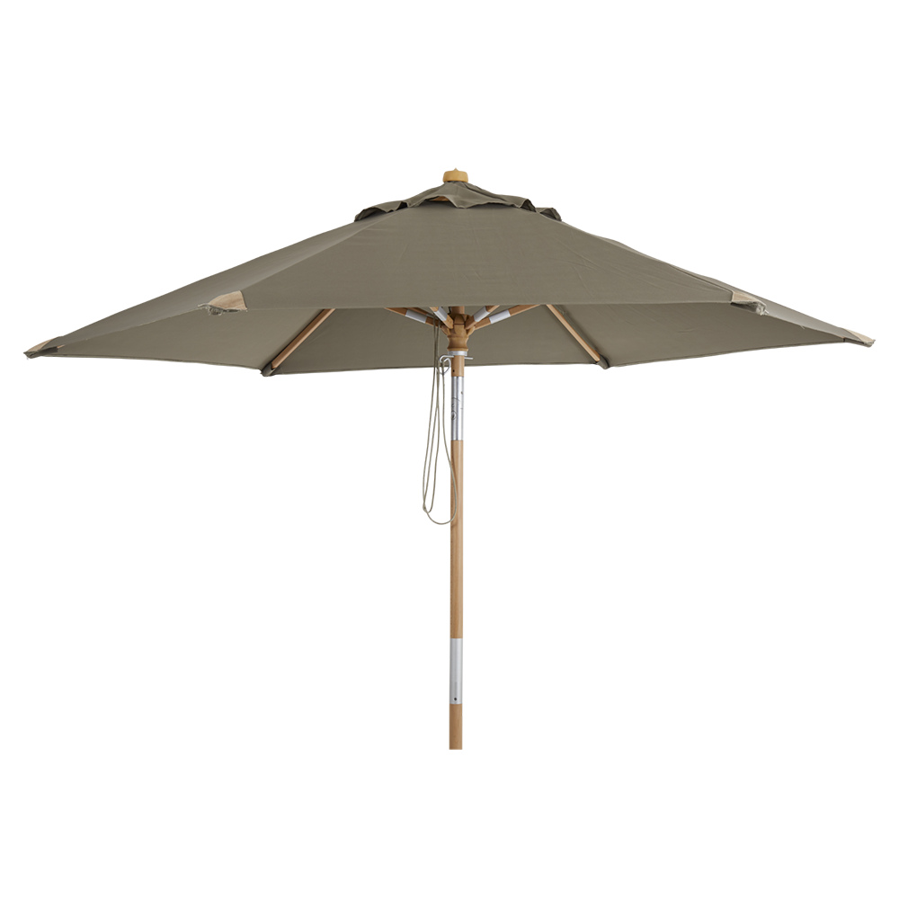 Detta eleganta 2,5 meter parasoll är tillverkat av trä, med en mattlackerad yta som ger en naturlig och rustik känsla. Den 2-delade stången är utrustad med push-tilt funktion, vilket gör det enkelt att justera vinkeln på parasollet efter behov. Parasollet har även vackra läderskoningar som ger en extra touch av elegans. Väven är gjord av högkvalitativt 250 g polyester, som är både slitstarkt och vattenavvisande. Detta parasoll är perfekt för att skydda dig från solen och samtidigt ge en elegant touch till din utomhusmiljö.