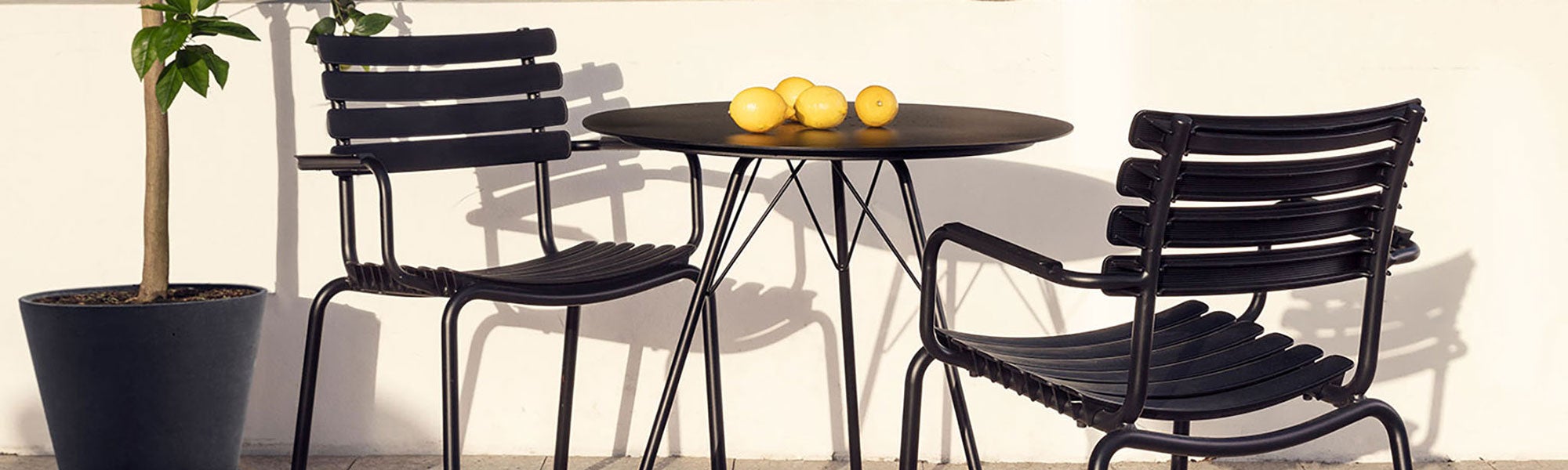 Houe erbjuder ett stort sortiment av trädgårdsmöbler i aluminium, plast och bambu. Stora matbord, balkongmöbler, sköna gungstolar, sidobord och stapelstolar är några av de många utemöblerna som återfinns i Houes stora sortiment. En unik produkt för Houe är deras stolar med ergonomiska plastlameller i olika färger som sviktar något och därmed anpassar sig efter din kropp för maximal komfort. Du kan dessutom byta ut lamellerna om du någon gång vill byta färg på din stol, gungstol, solstol eller positionsstol från Houe.