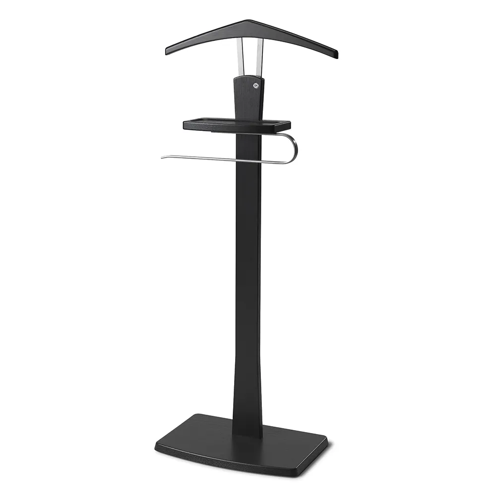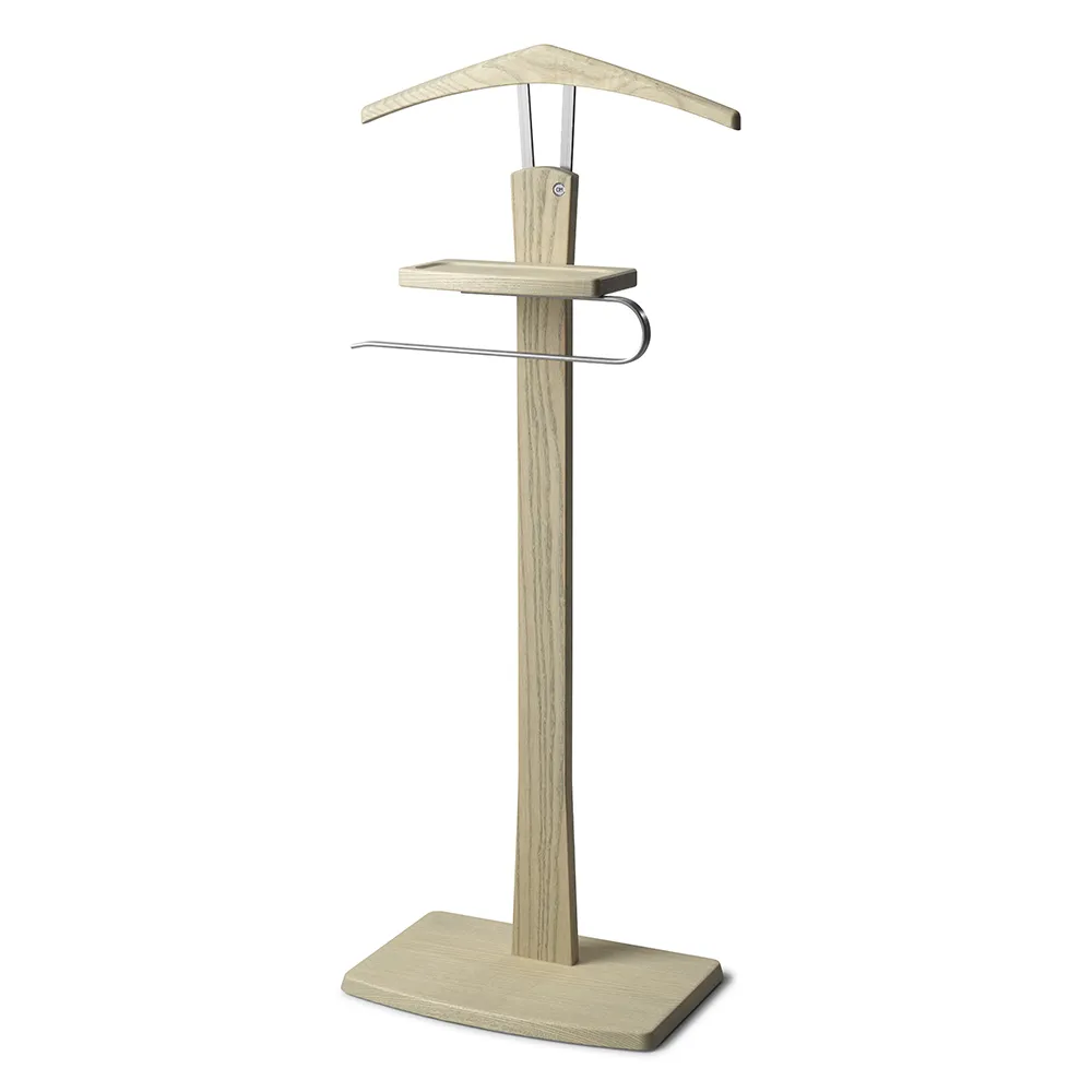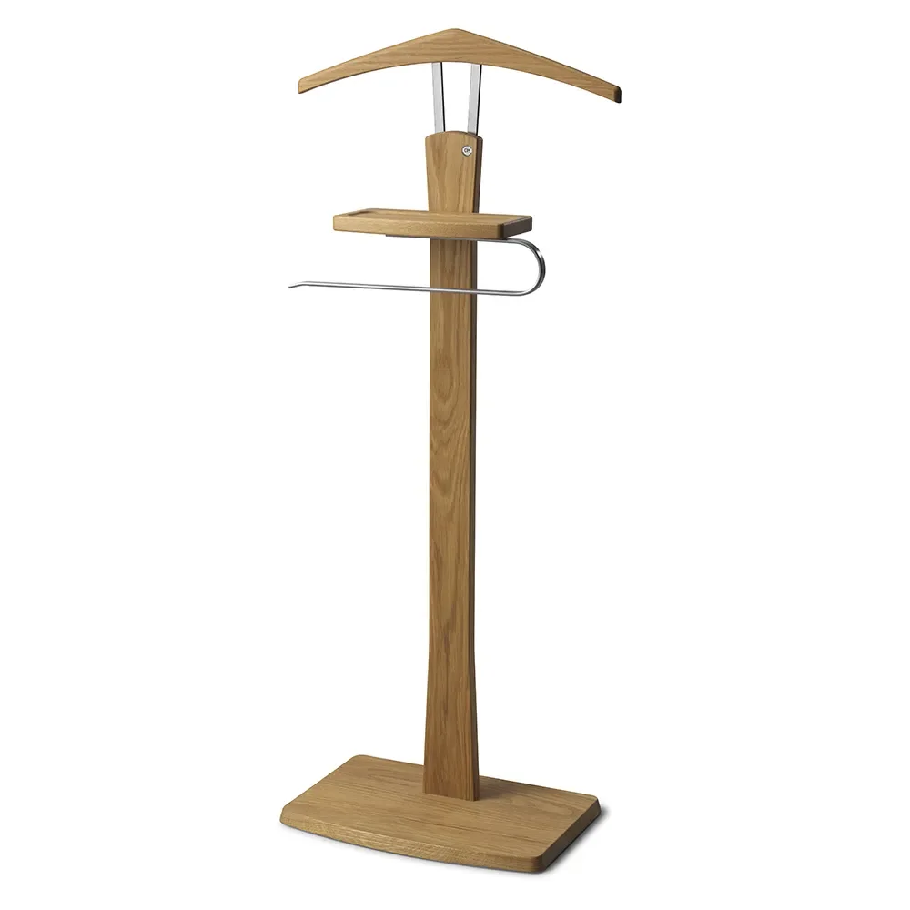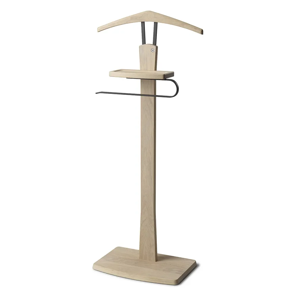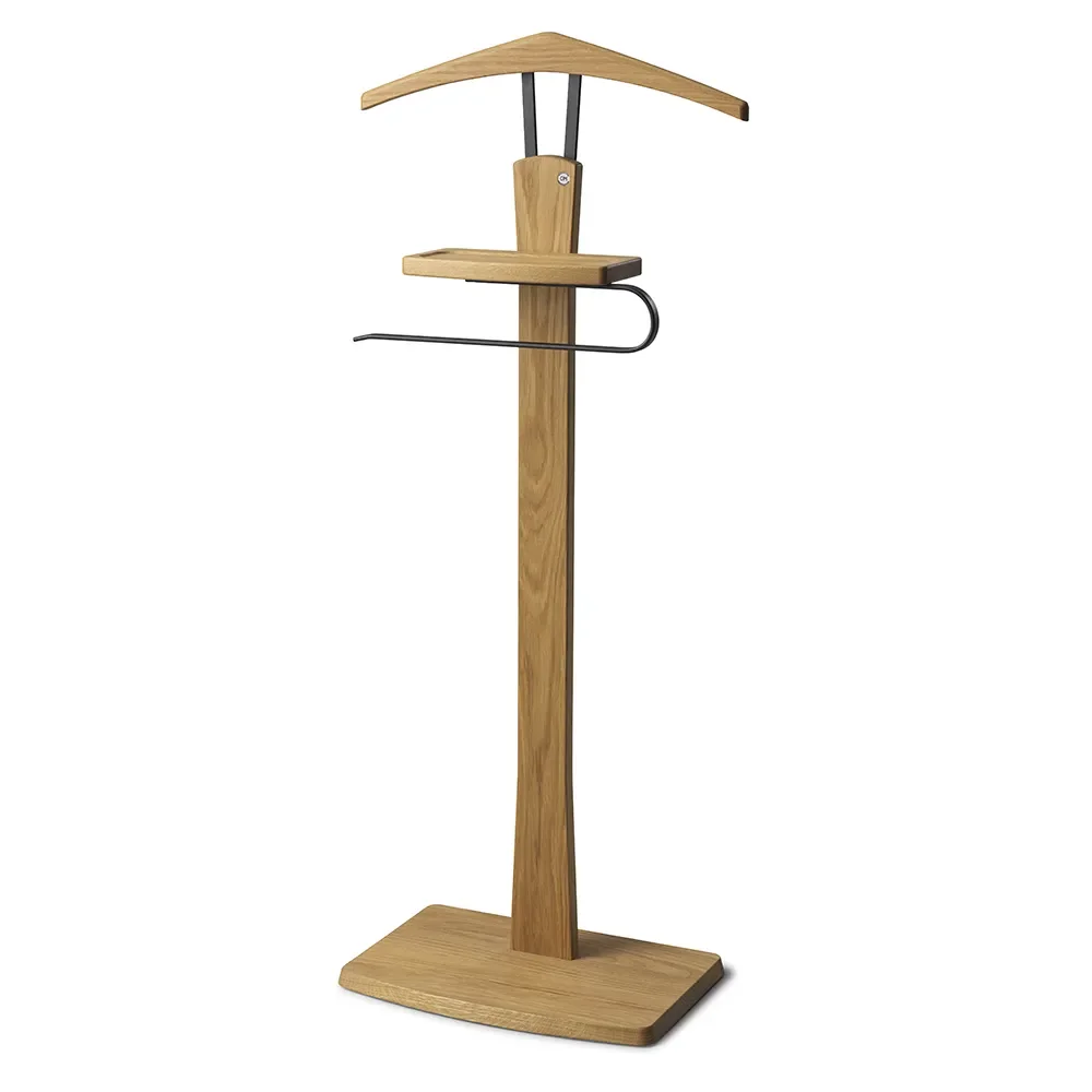Zeve Herrbetjänt är tillverkad i massiv ek eller vitlackad massiv björk, och har metalldetaljer i antingen mattsvart stål eller slipat stål. Dessa detaljer ger den en modern och elegant look som förhöjer estetiken i ditt hem. Välj Herrbetjänt Zeve för en praktisk och stilren lösning för dina kläder.
